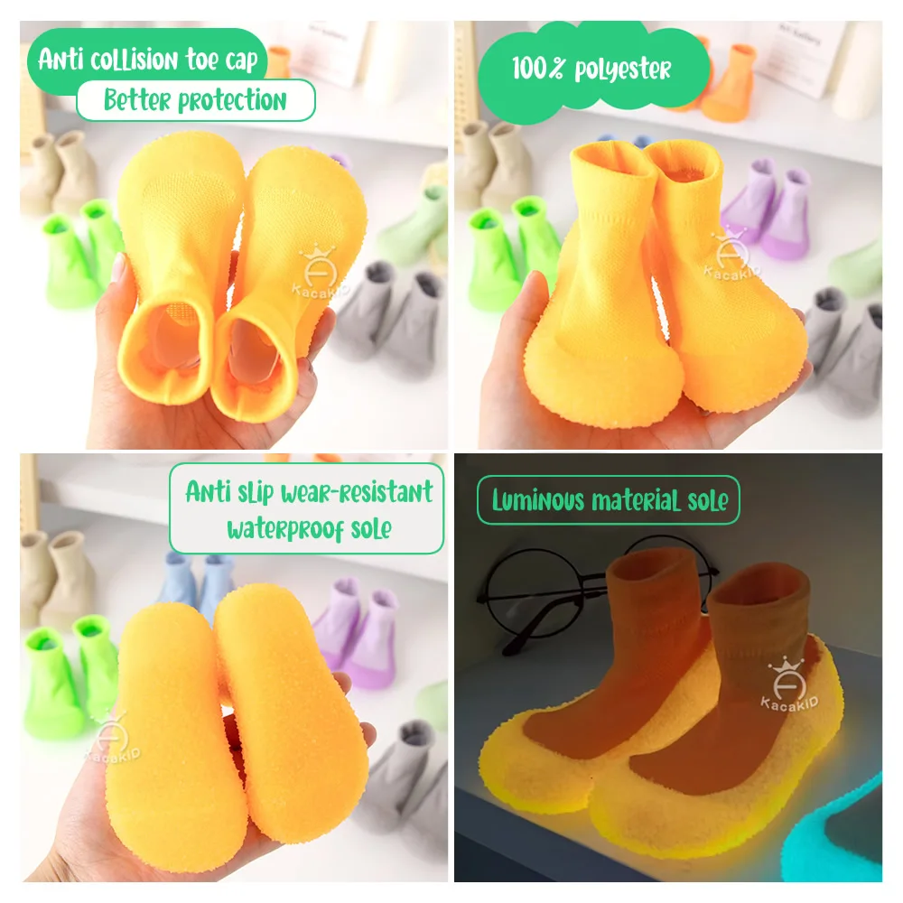 Kacakid Luminous Rubber Sole Floor Shoes Parent-child Anti-slip Baby Sock Shoes Unisex Indoor Outdoor Toddler Kids Knit Booties