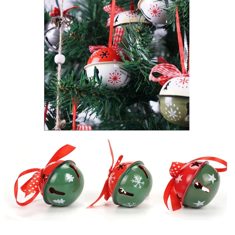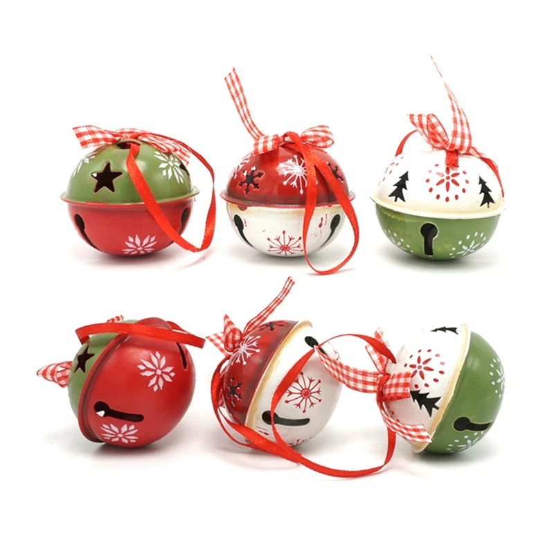 Акция! 6 шт. Рождественское украшение для дома красный зеленый белый металлический колокольчик с лентой Рождественская елка украшение B