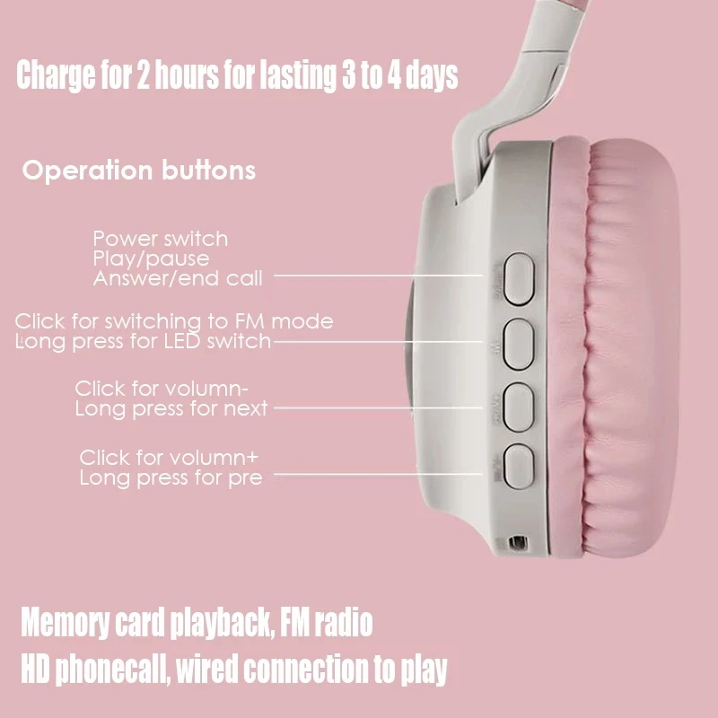 GAINBANG кошачьими ушками Беспроводной Bluetooth наушники с светодиодный светильник Шум микрофон с функцией шумоподавления наушники Поддержка TF карты 3,5 мм разъем гарнитуры