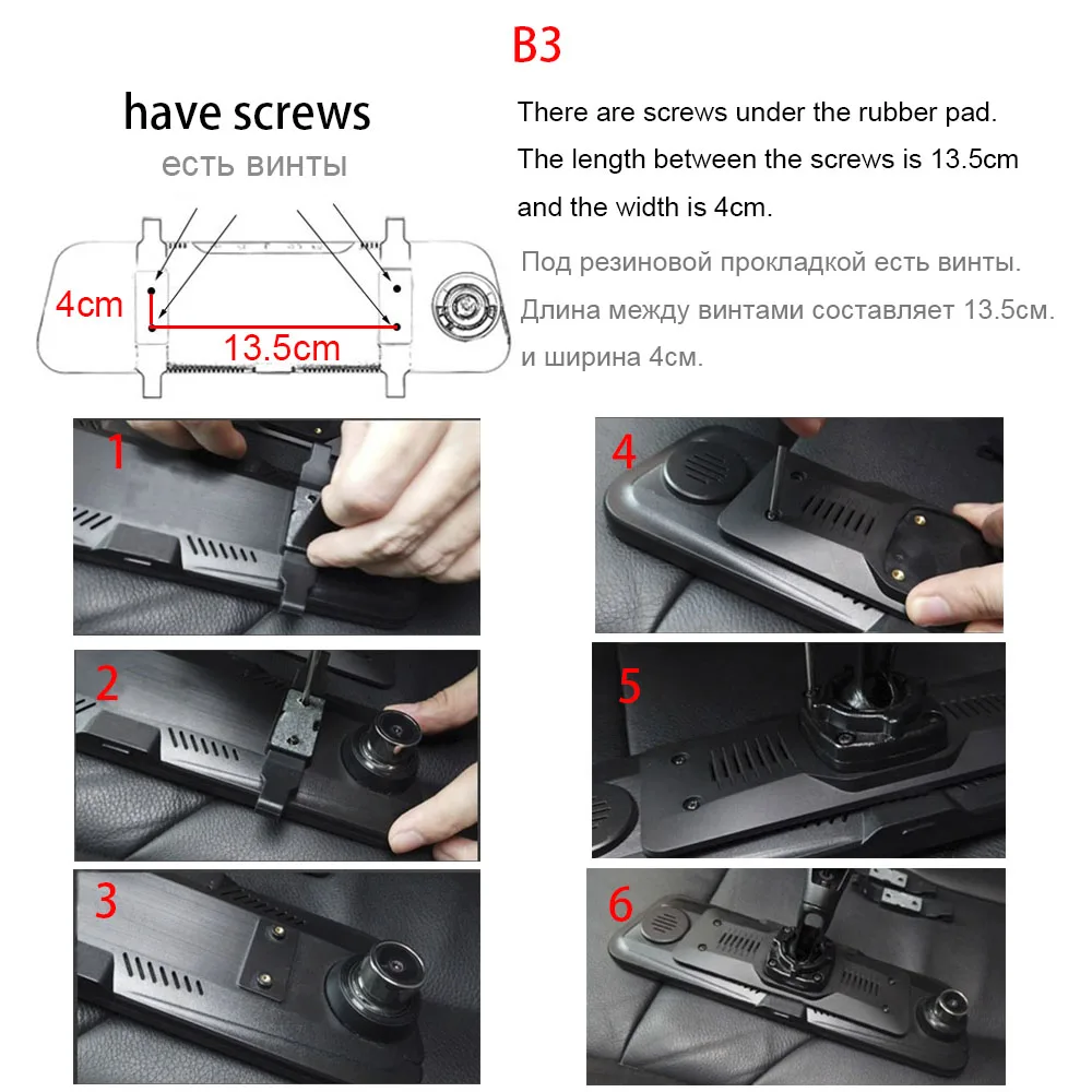 В тех случаях, когда есть винты под резиновая прокладка, длина между винтами-13 см, а ширина составляет 2,5 см.