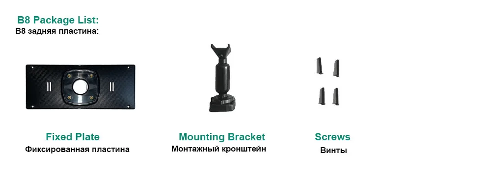 A: Монтажный кронштейн, фиксированная пластина, винты