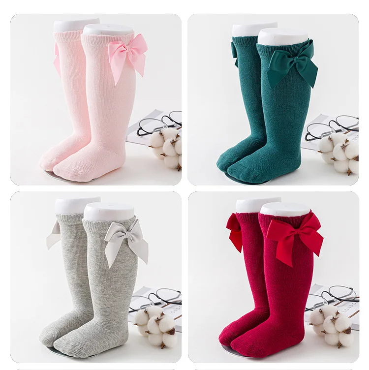 9 цветов, милые детские носки принцессы с большим бантом для девочек, детские носки без пятки с бантиком, шерстяные гольфы для малышей, вязаные носки, 7 лет