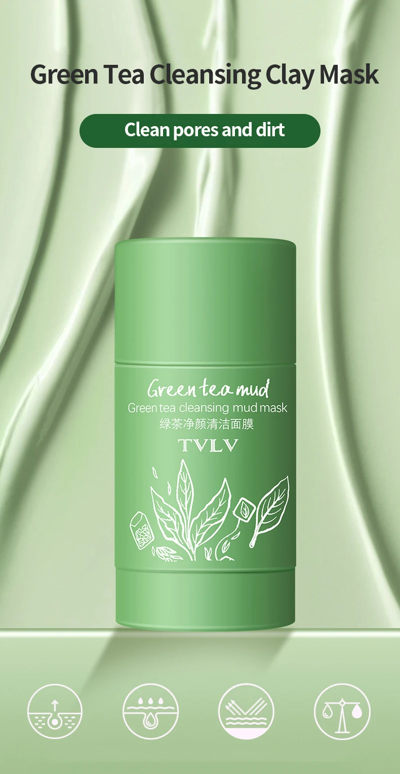 Зеленый чай Очищающая маска для лица палочка глубокое очищение твердая маска для лица контроль жирности пор Очищающая глина отбеливающая глина маска уход за кожей