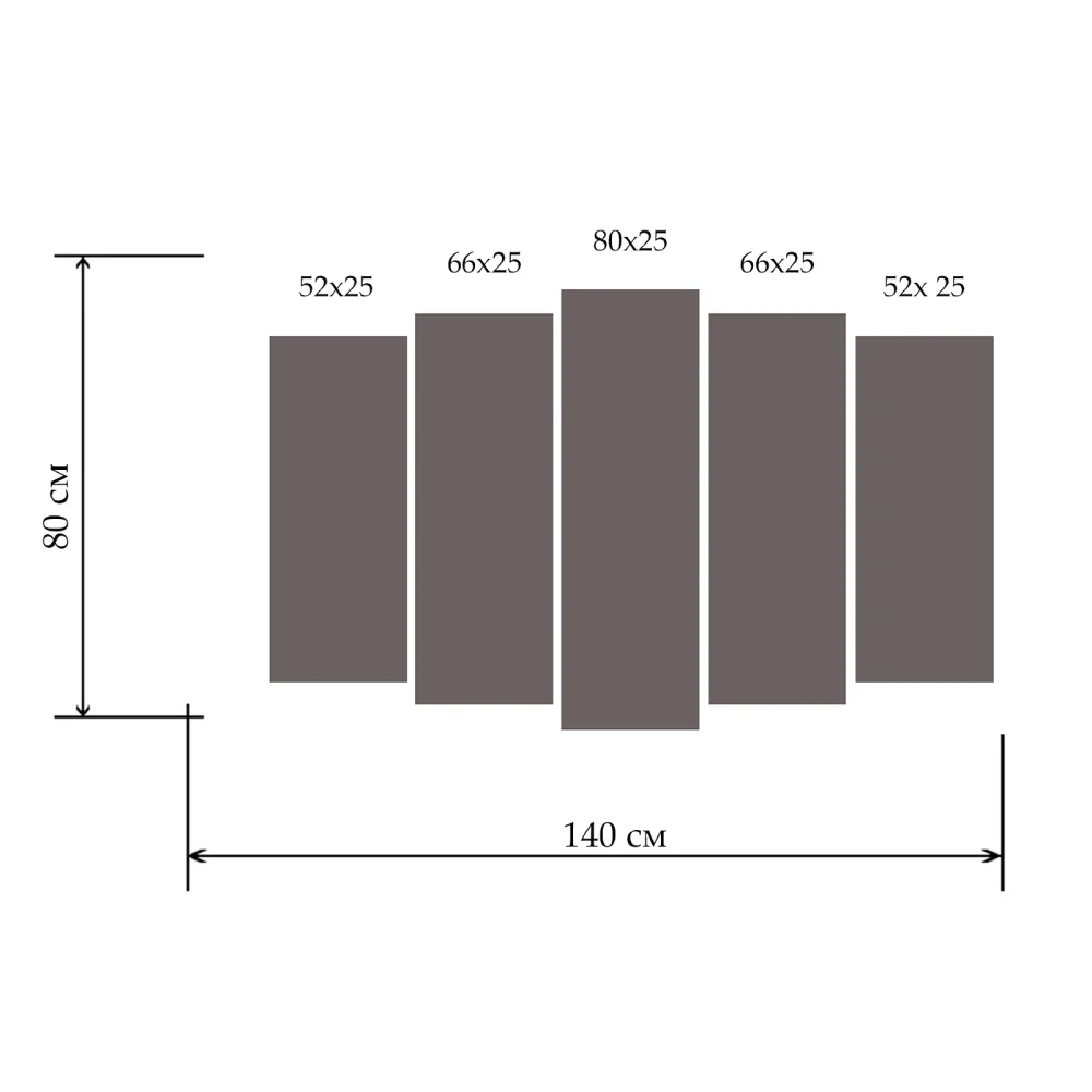 Размеры модулей, см | 52x25; 52x25; 66x25; 66x25; 80x25 |