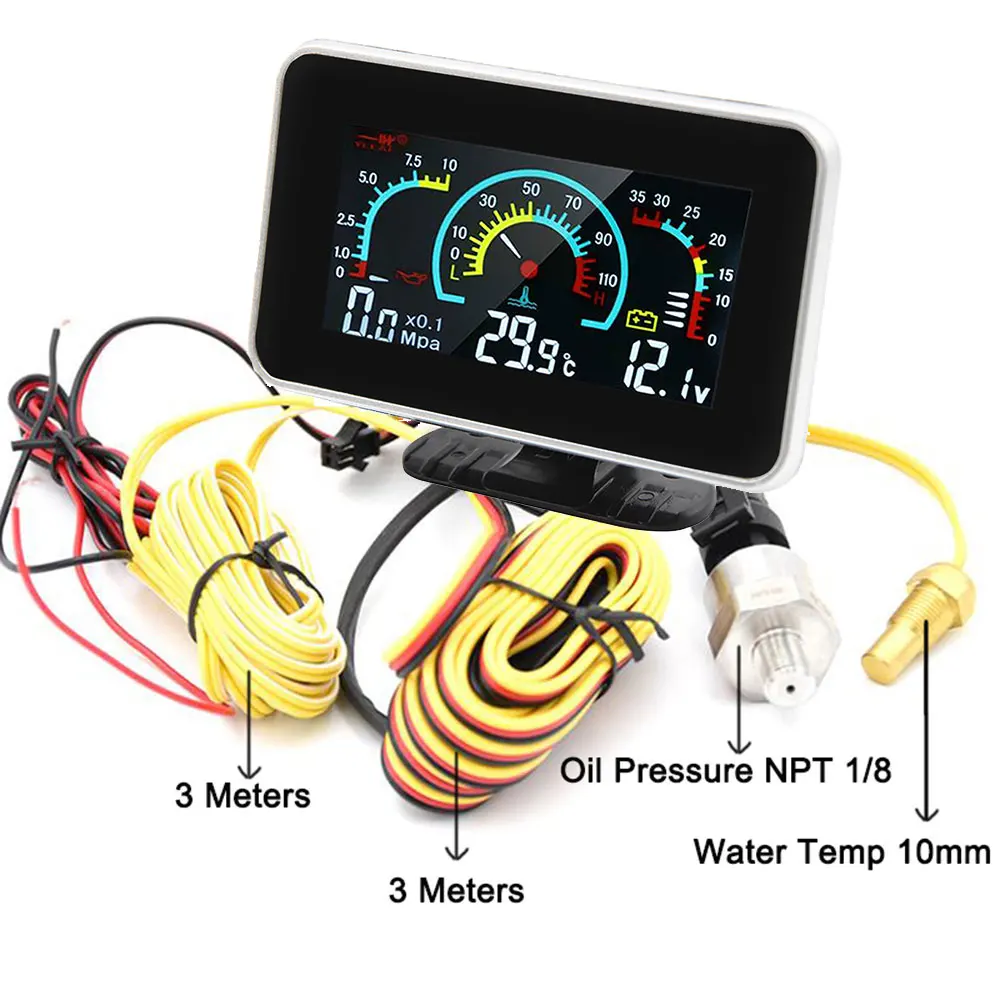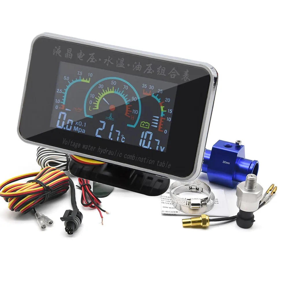 Универсальный 3 в 1 Многофункциональный цифровой датчик Водонепроницаемый Температура воды Датчик давления масла вольтметр температура автомобиля часы с будильником