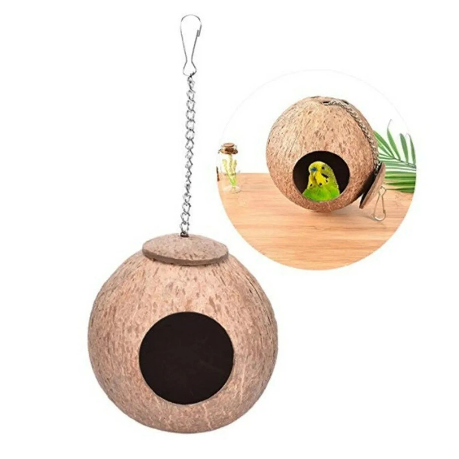 Изготовленные из натуральных материалов кокосового ореха, птичьи дома безопасны и долговечны.