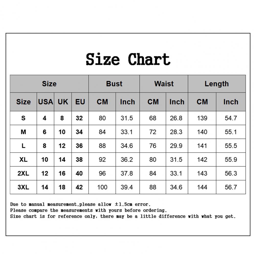 Размер: 3XL, обхват груди: 112 см/44,1 дюйма, обхват талии: 92 см/36,2 дюйма, обхват бедер: 112 см/44,1 дюйма, длина: 146 см/57,5 дюйма (приблизительно)
