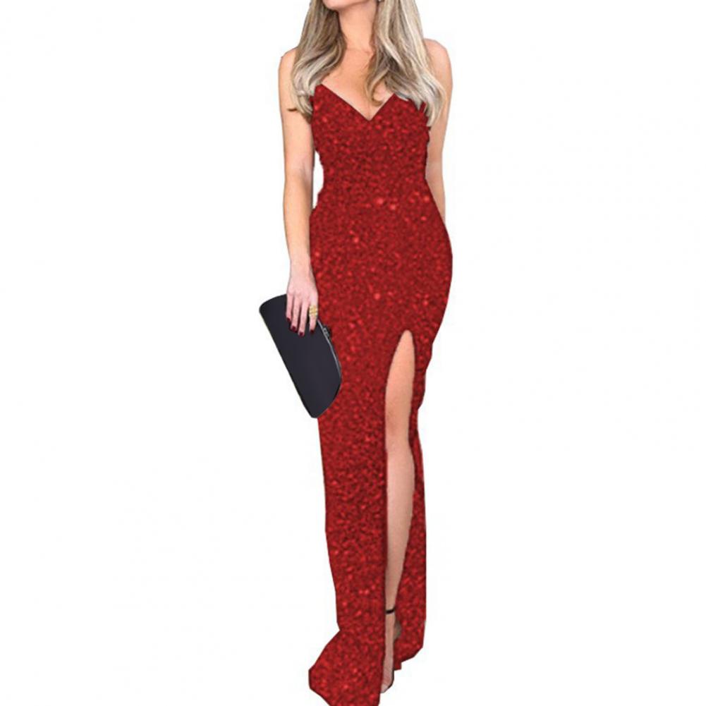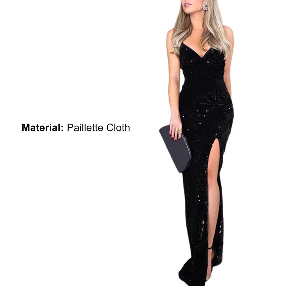 Дизайн с блестками делает вас очаровательными и привлекательными в вечерние дни. Дизайн с разрезом по бокам помогает показать вашу длинную и стройную ногу.