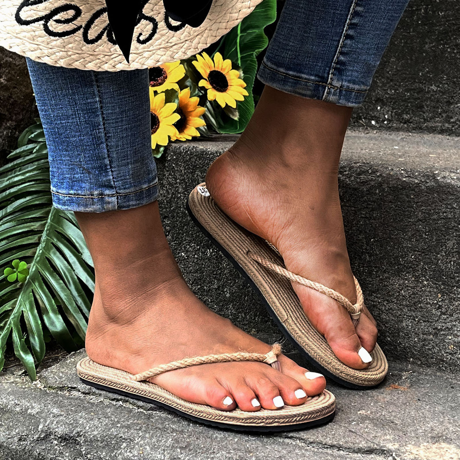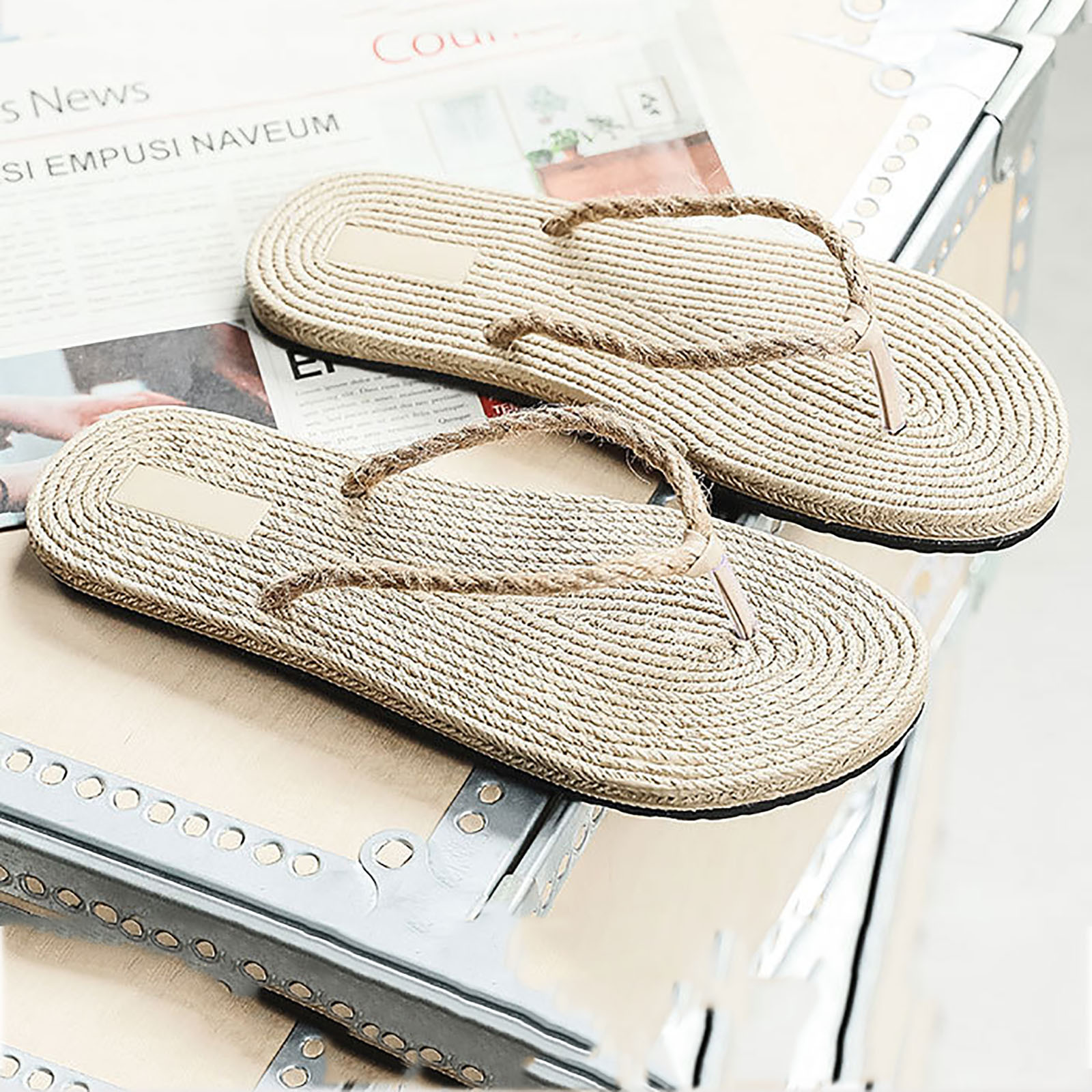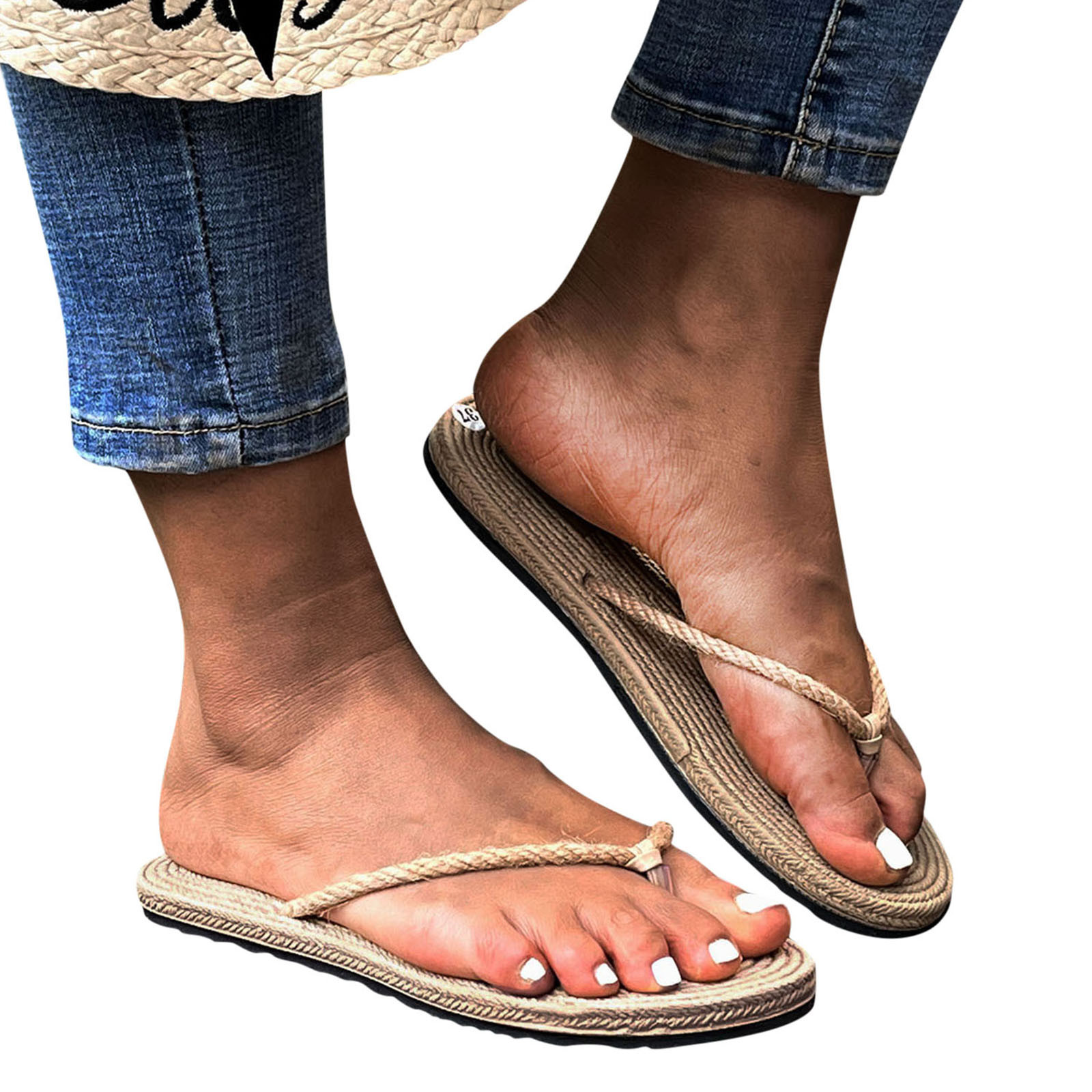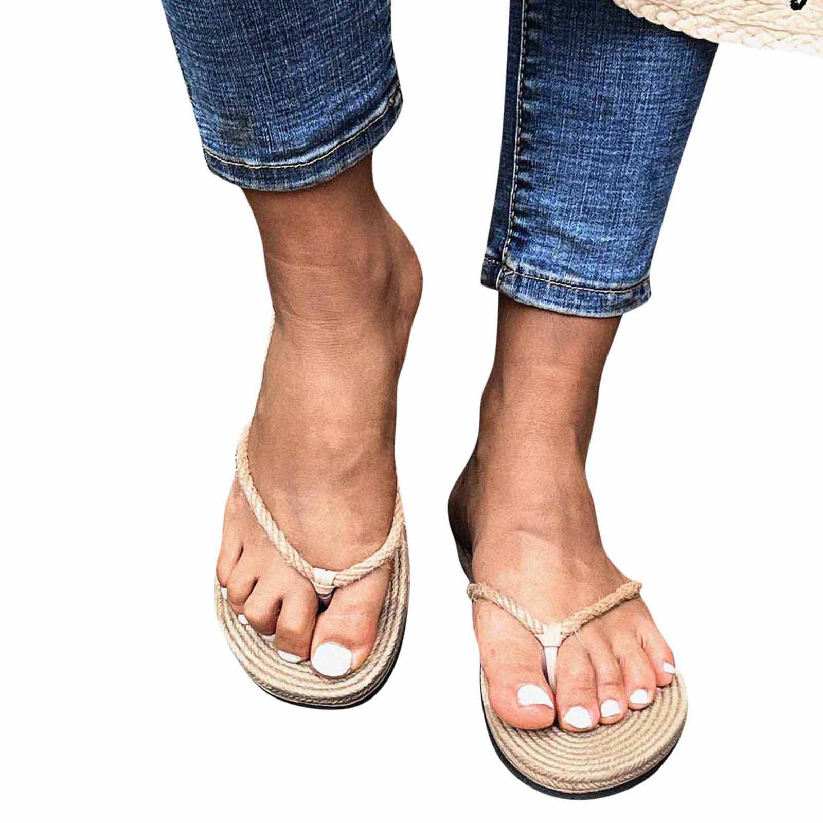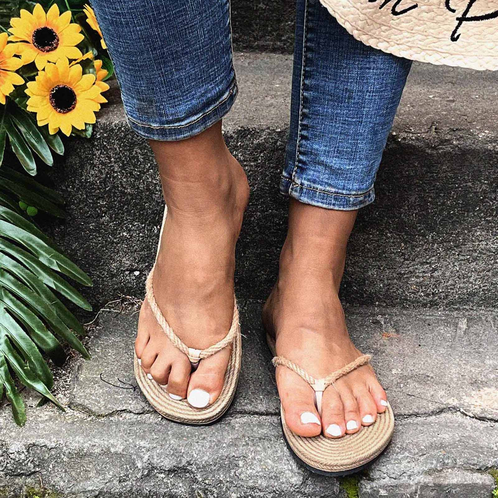 Тапочки для женщин и девочек, плоские повседневные босоножки, соломенная льняная подошва, тапочки, пляжная обувь, Вьетнамки