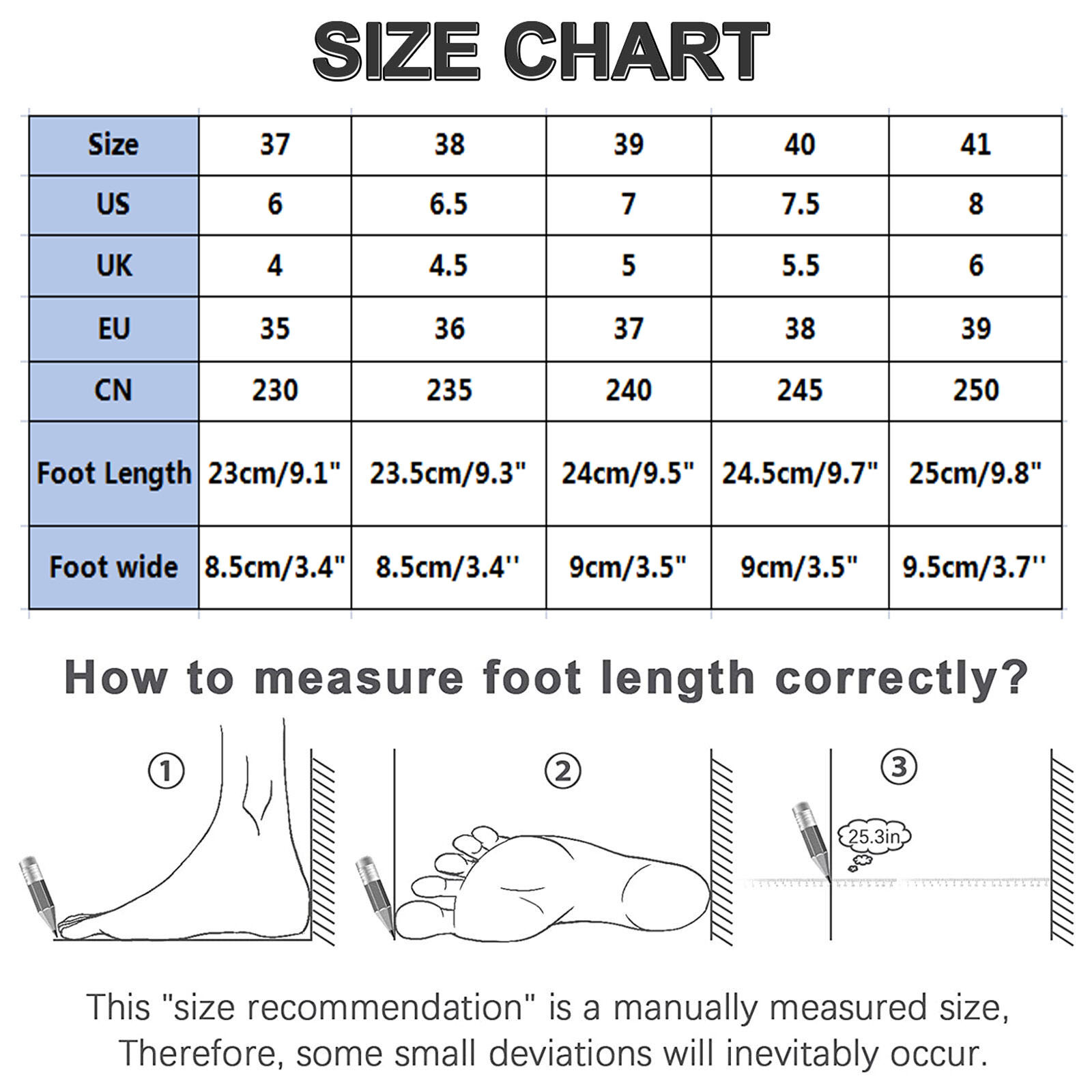 Размеры | США | Великобритания | ЕС | CN | Длина стопы | Широкая стопа |