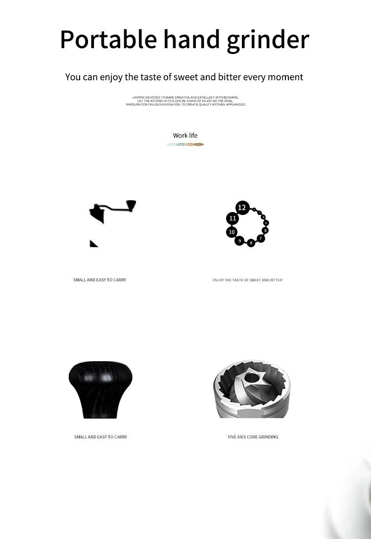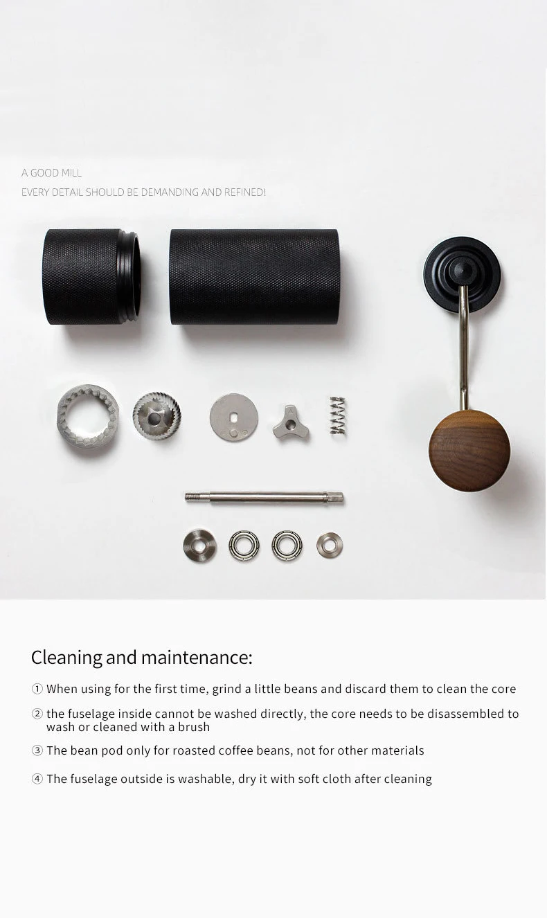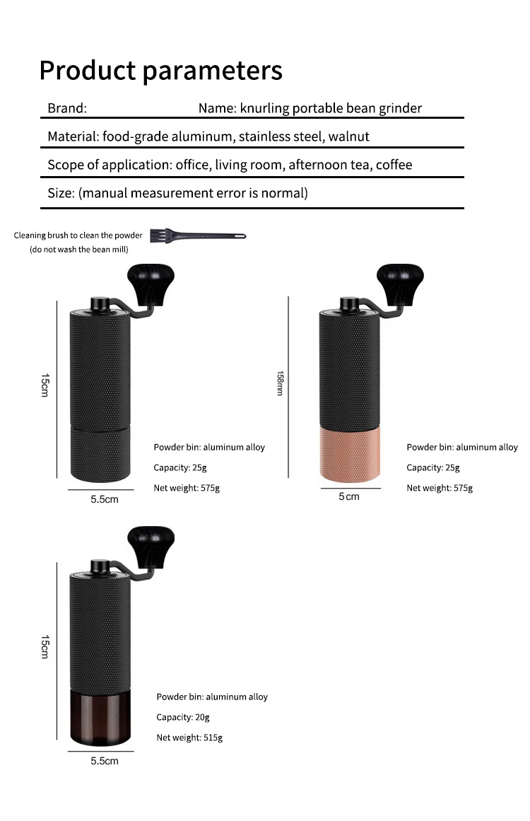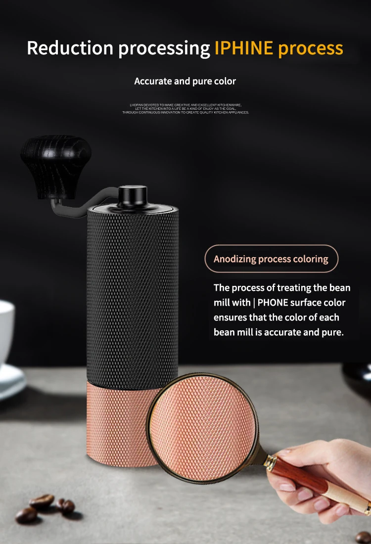 Ручная кофемолка с регулируемой ручкой для шлифовки кофейных зерен с ЧПУ сердечником из нержавеющей стали Портативный для дома, офиса