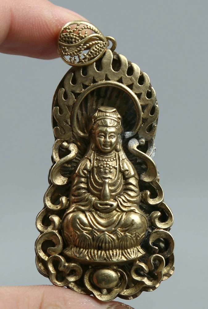 2,5 ''Curio Китайский Бронзовый Kwan-Yin Guan Yin боддхисаттва амулет маленький кулон