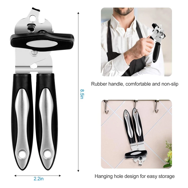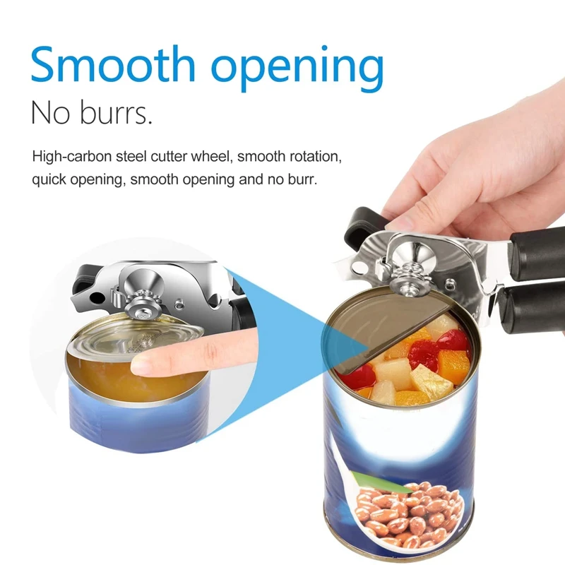 Эргономичный дизайн и безопасность: большая Нескользящая ручка Профессионального мощного консервного открывателя спроектирована с эргономичной ручкой в прочной форме для легкого поворота, вы можете легко и удобно держать плотно выгорающие ручки и плавно поворачиваться, не повреждая пальцы, это позволяет безопасно и эффективно разрезать открытые банки.