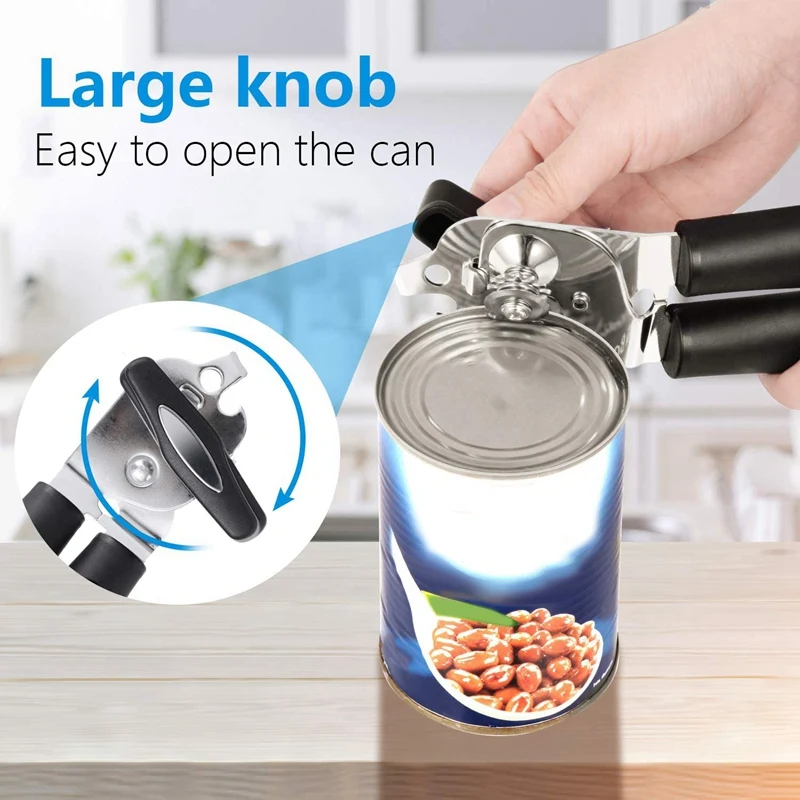 Ручной консервный нож, открывалки для бутылок с большой поворотной ручкой, резкая резка, гладкая кромка, идеально подходит для пожилых людей с артритом
