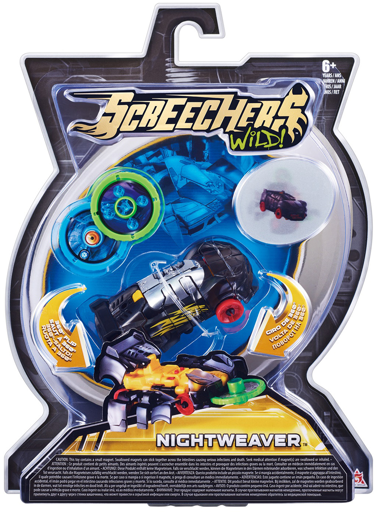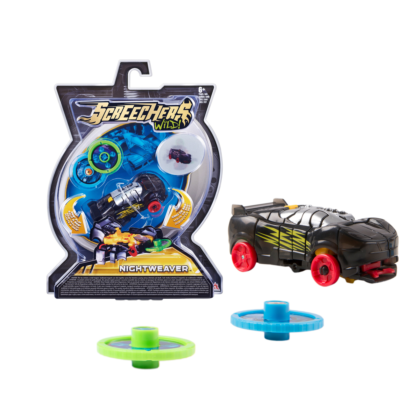 Машинка-трансформер "Скричер Найтвивер" обладает прочной конструкцией с надежными креплениями и выполнена из высококачественного материала. В набор входит машинка-трансформер (8х4х3 см) и 2 магнитных диска диаметром 3 см. Игрушка упакована в блистер (16х5х21 см).