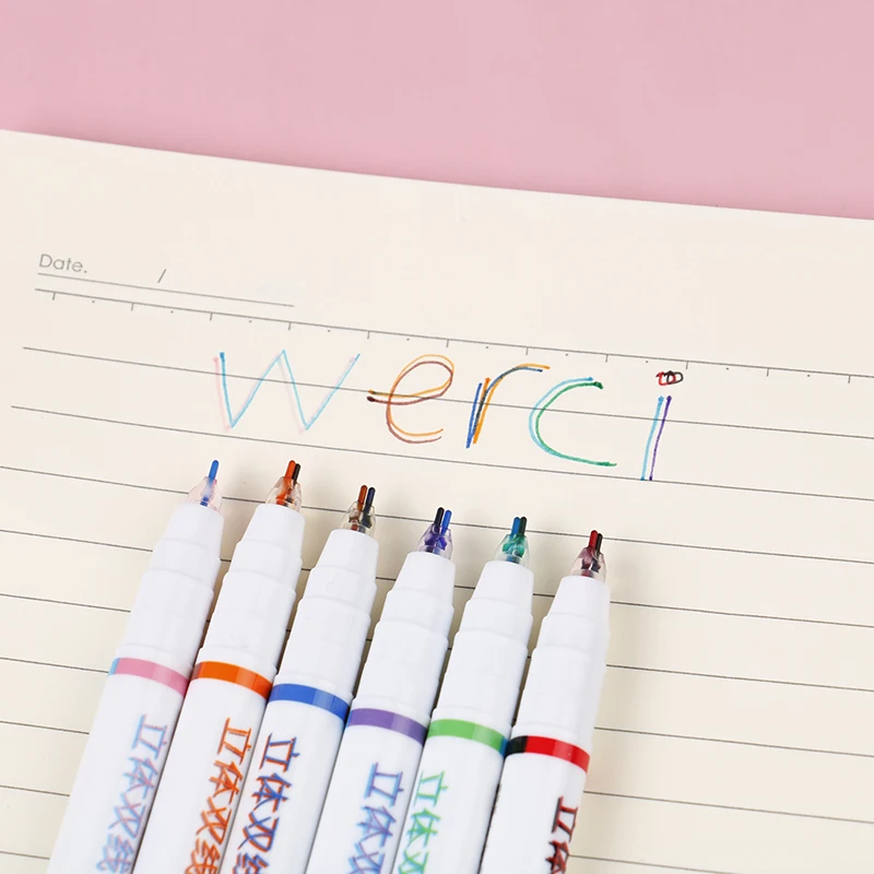 6 ручек 2 линии набор ручек двойная линия подводка для рисования чернила для воды красный синий цвет наконечник искусство лом