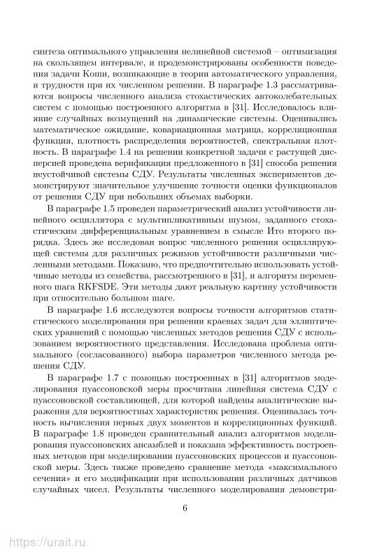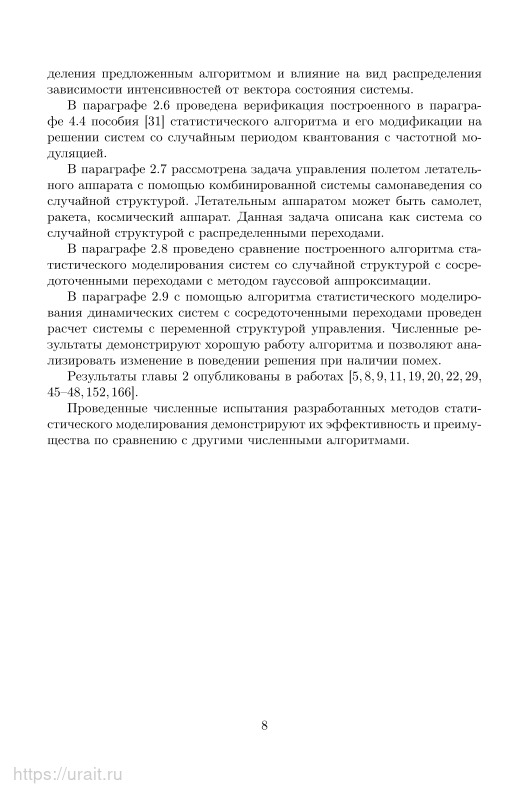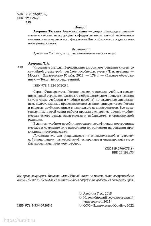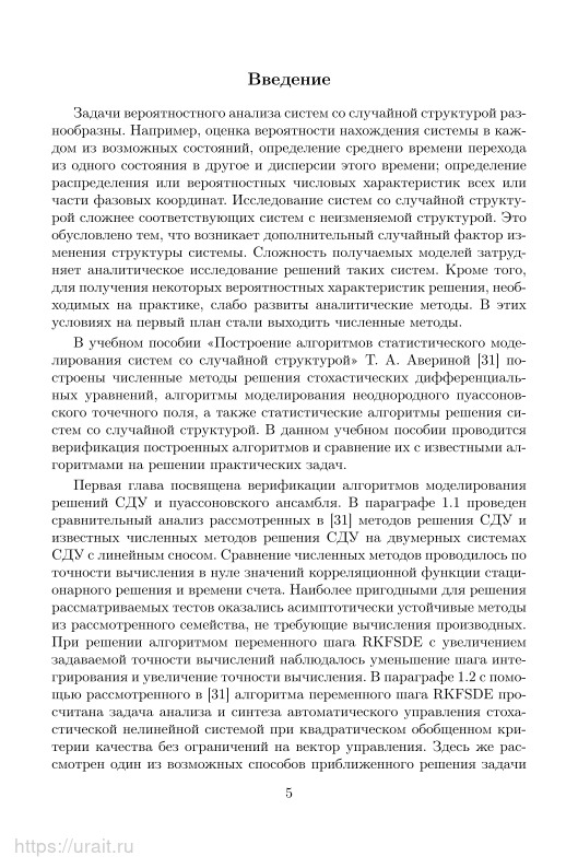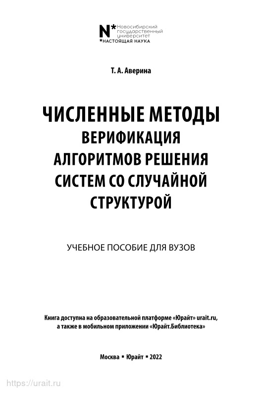 В данном учебном пособии проводится верификация построенных методов и сравнение их с известными алгоритмами на решении прикладных и тестовых задач. Освещена верификация алгоритмов моделирования решений СДУ и пуассоновского ансамбля, на системах со случайной структурой с распределенными независимыми переходами проводятся численные испытания статистического алгоритма моделирования систем с распределенными переходами и т. д.