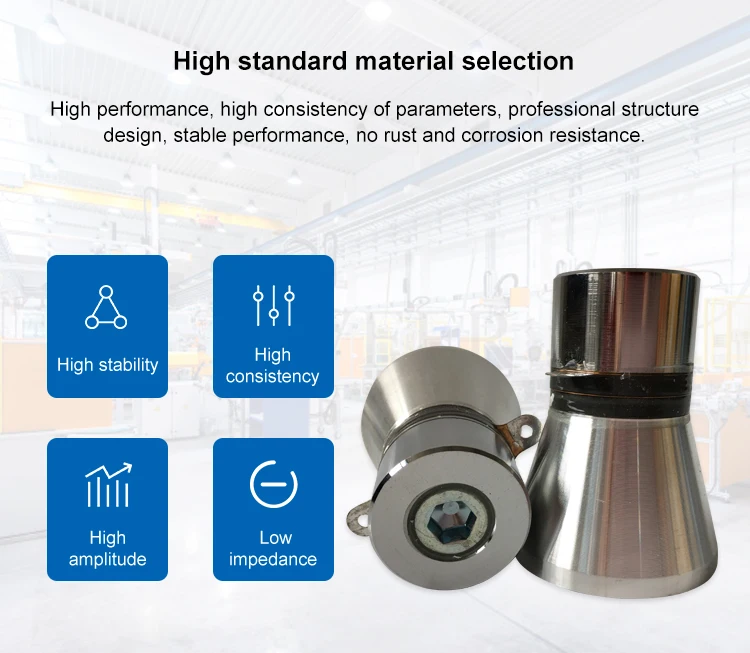 Our company provides professional ultrasonic transducers with stable quality, high-efficiency output and moderate price based on years of experience in ultrasonic cleaning and combined with the opinions and feedback of the majority of users.