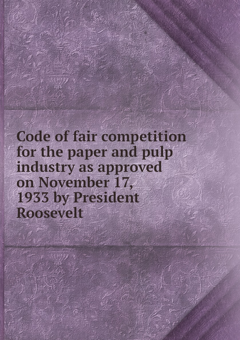 Code of fair competition for the paper and pulp industry as approved on November 17, 1933 by President Roosevelt