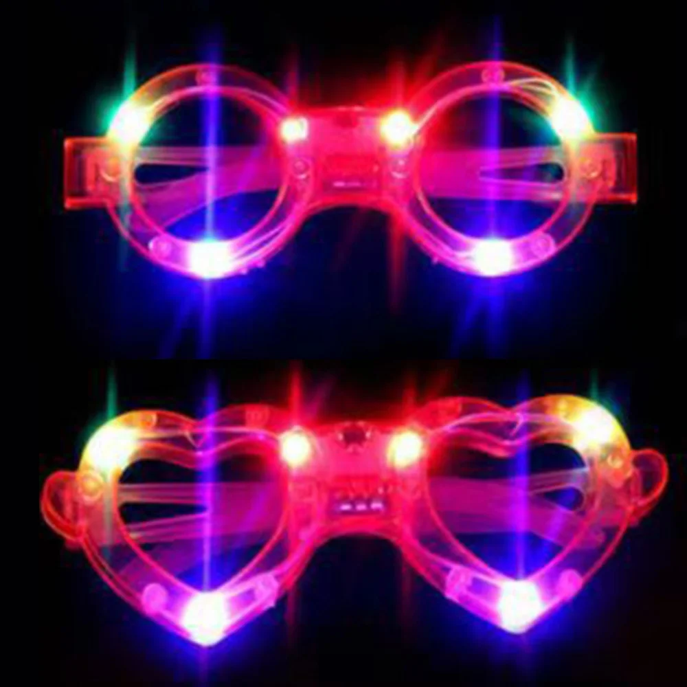 Светящиеся светодиодный очки для взрослых и детей, вечерние солнцезащитные очки для Хэллоуина, светящиеся в темноте, затвор с сердцем, неоновая вспышка, вечерние, на Рождество, день рождения