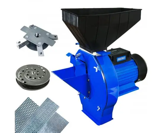 Измельчитель кормов Варяг ИК-1800D предназначен для переработки зерна и корнеплодов, идущих для приготовления кормов при содержании домашних животных в личных подсобных хозяйствах. Измельчитель состоит из электропривода, в состав которого входит электродвигатель с конденсатором; рабочей камеры, закрепленной на фланце электродвигателя; сменных рабочих органов - молотков, сито, диска терки и загрузочного бункера для зерна. Под бункером устанавливается регулировочная заслонка для подачи зерна. При использовании измельчителя для дробления зерна, в рабочей камере устанавливается сменное сито с отверстиями от 2 до 5 мм. входящие в комплектацию. Для шинковки корнеплодов используется терка, которая устанавливается на место молотковых ножей.