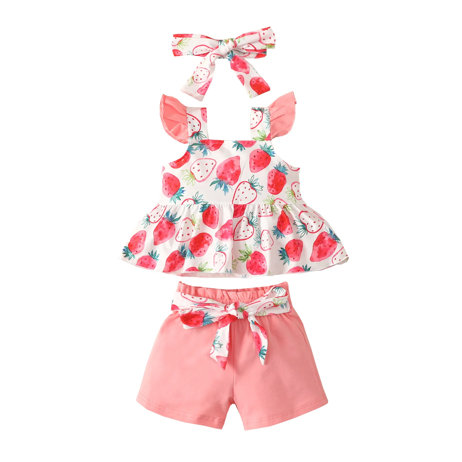 Комплект из 3 предметов, костюм для малышей хлопковый топ, футболка, штаны, шорты комплект с повязкой на голову, Детская летняя одежда без рукавов детская одежда