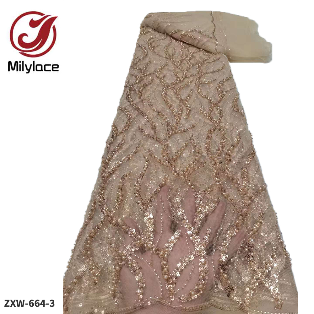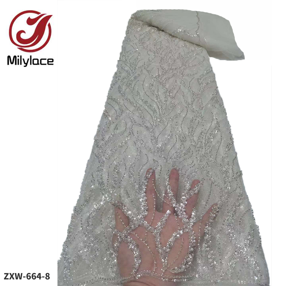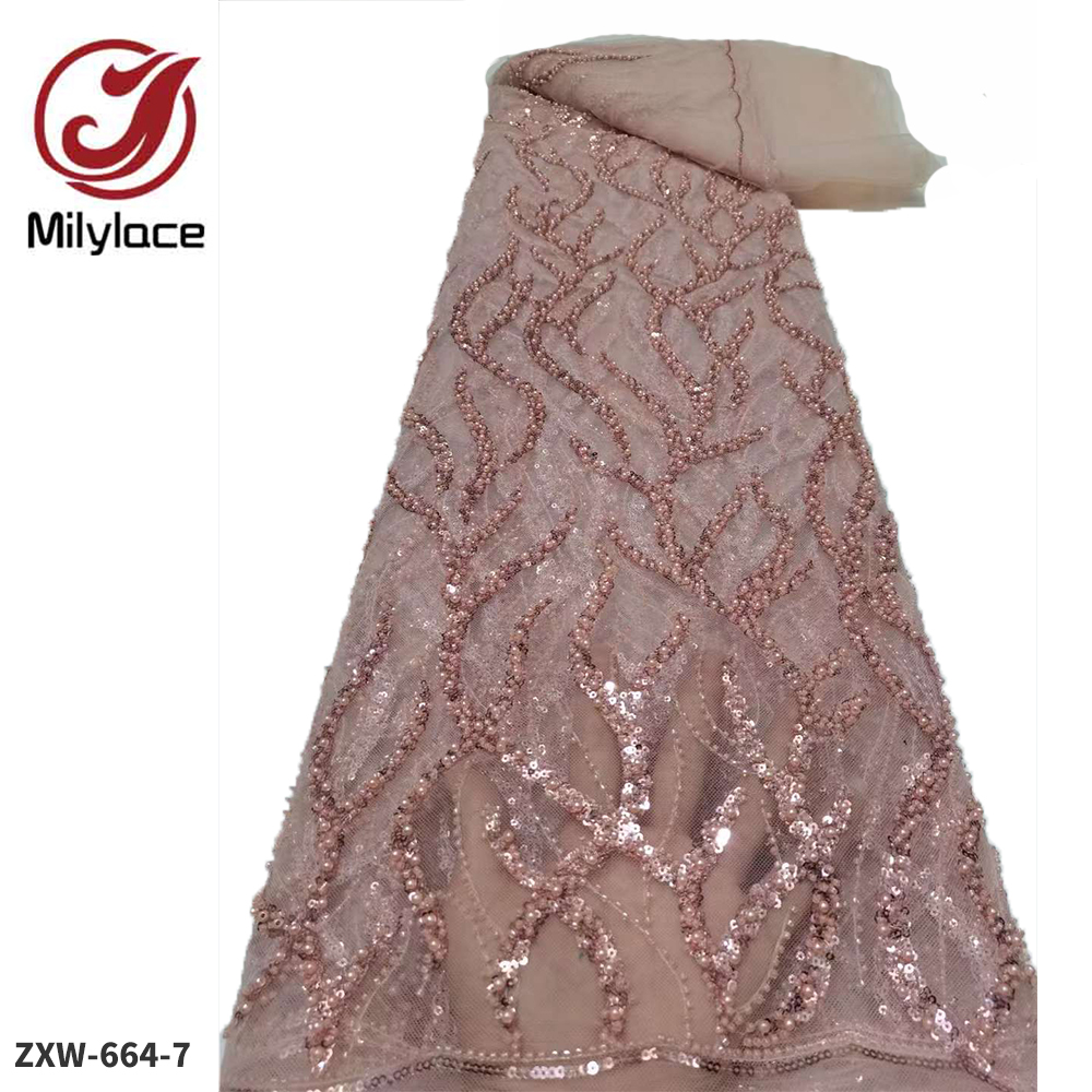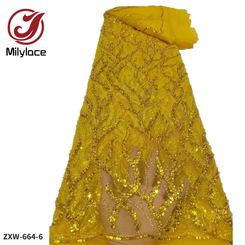 Африканская тесьма с пайетками 2022 ручная вышивка бисером французский тюль для нигерийской свадьбы ZXW-664.