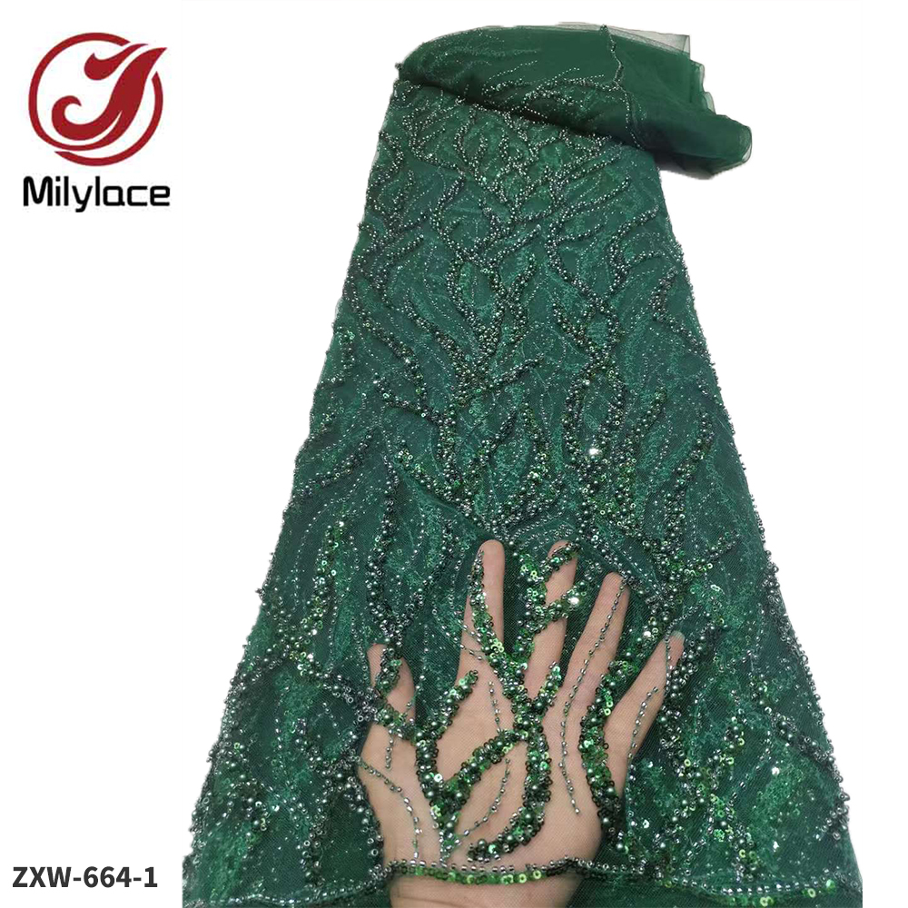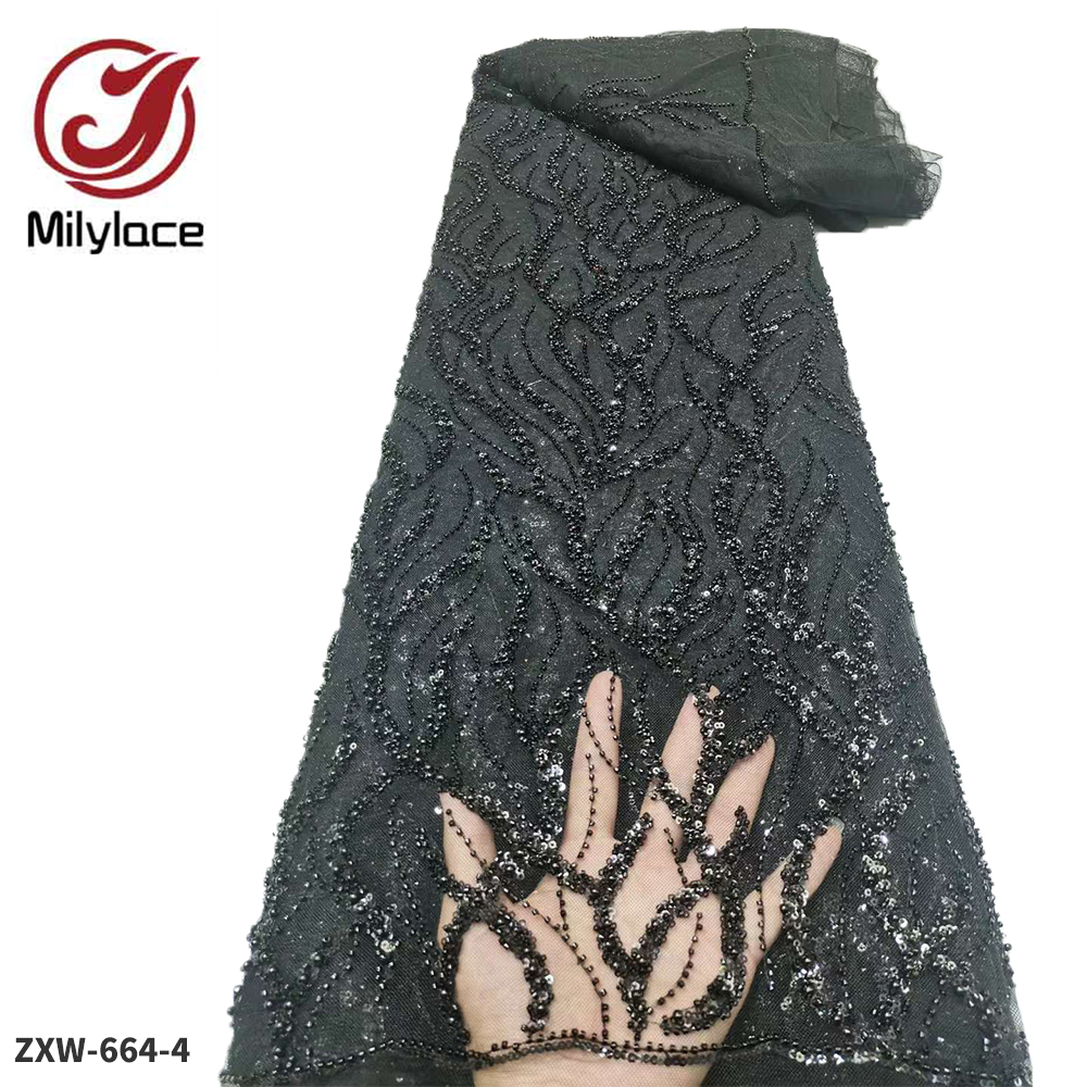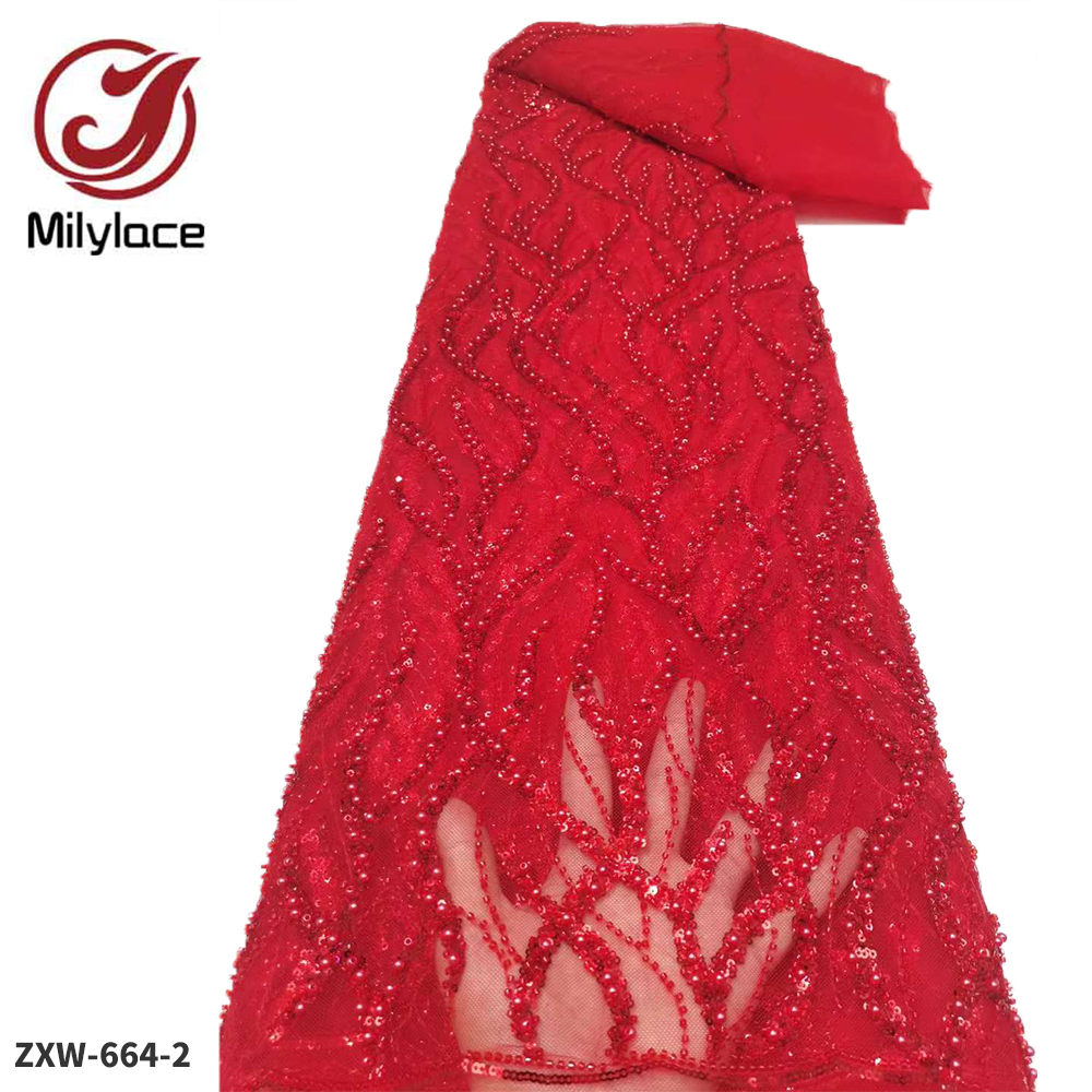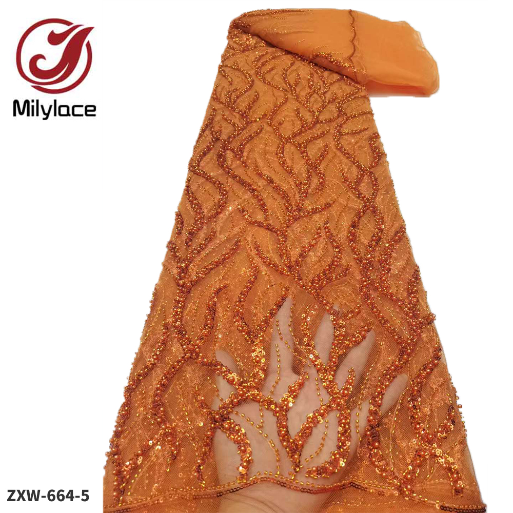 Африканская тесьма с пайетками 2022 ручная вышивка бисером французский тюль для нигерийской свадьбы ZXW-664.