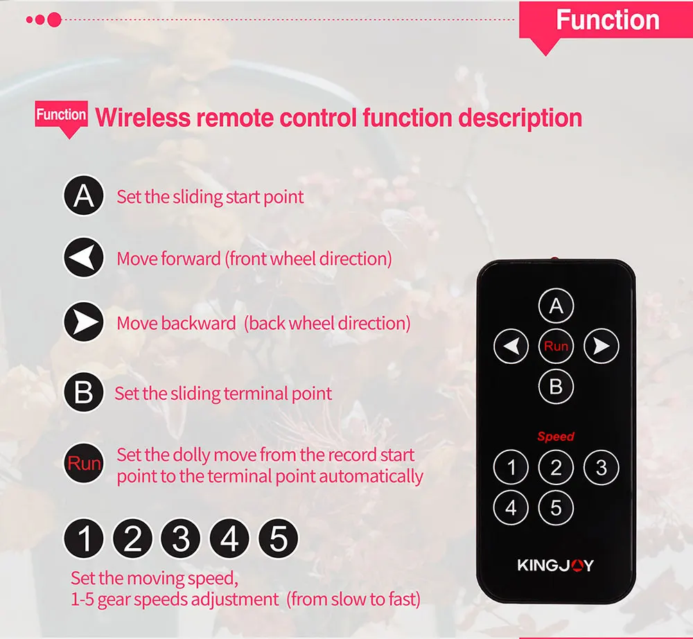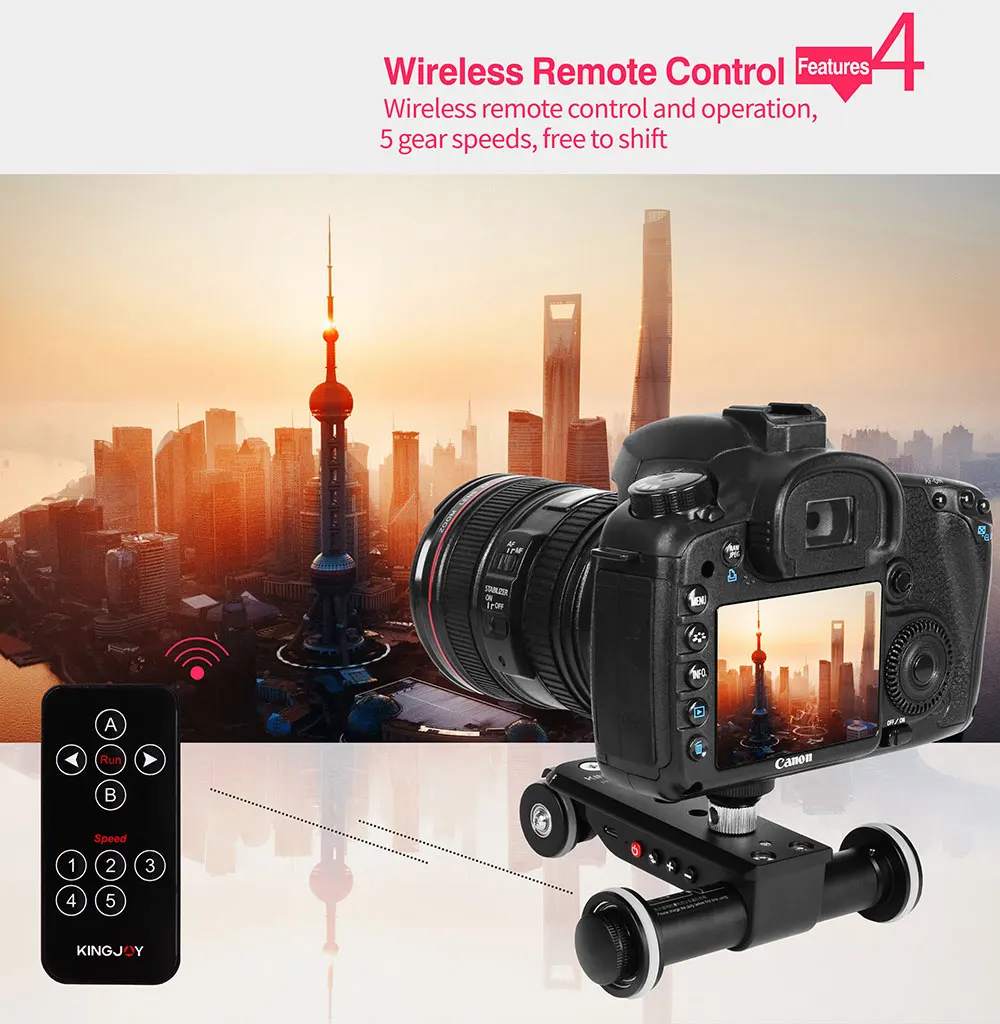 Портативный 3-х колесный автоматическая тележка с 5 уровнями регулировки скорости (11,8 мм/сек., 16,4 мм/сек., 19,5 мм/сек., 22 мм/сек., 25,8 мм/сек.), ультра низким уровнем шума и стабильное движение, подходит для видеосъемки с замедленным/Макро/низким углом.