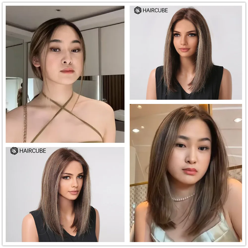Парик для волос, коричневый, короткий, прямые парики для женщин, 13*1, парик из натуральных волос на кружеве, женский, средний, раздельный, Омбре, блонд, Боб, Реми, парик для волос