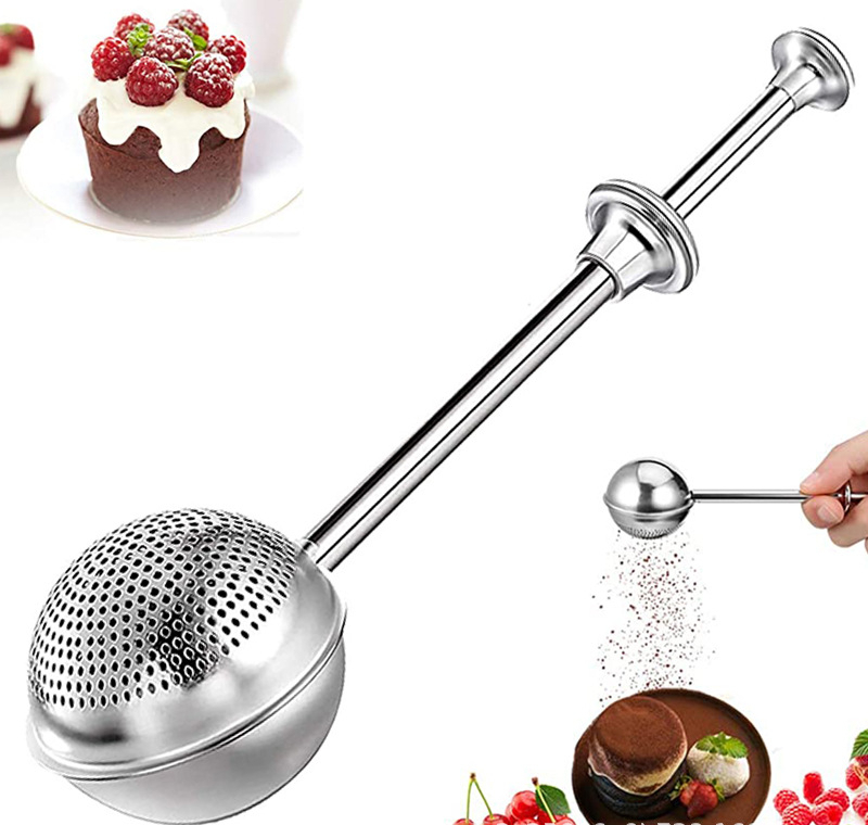 Весенний дизайн используется для разбрызгивания сахарного порошка и других специй одной рукой. Он имеет различные функции. Используется для выпечки порошка и фильтрации чая. Он изготовлен из нержавеющей стали 304, который является светильник весовой, здоровой и безопасной и долговечной.