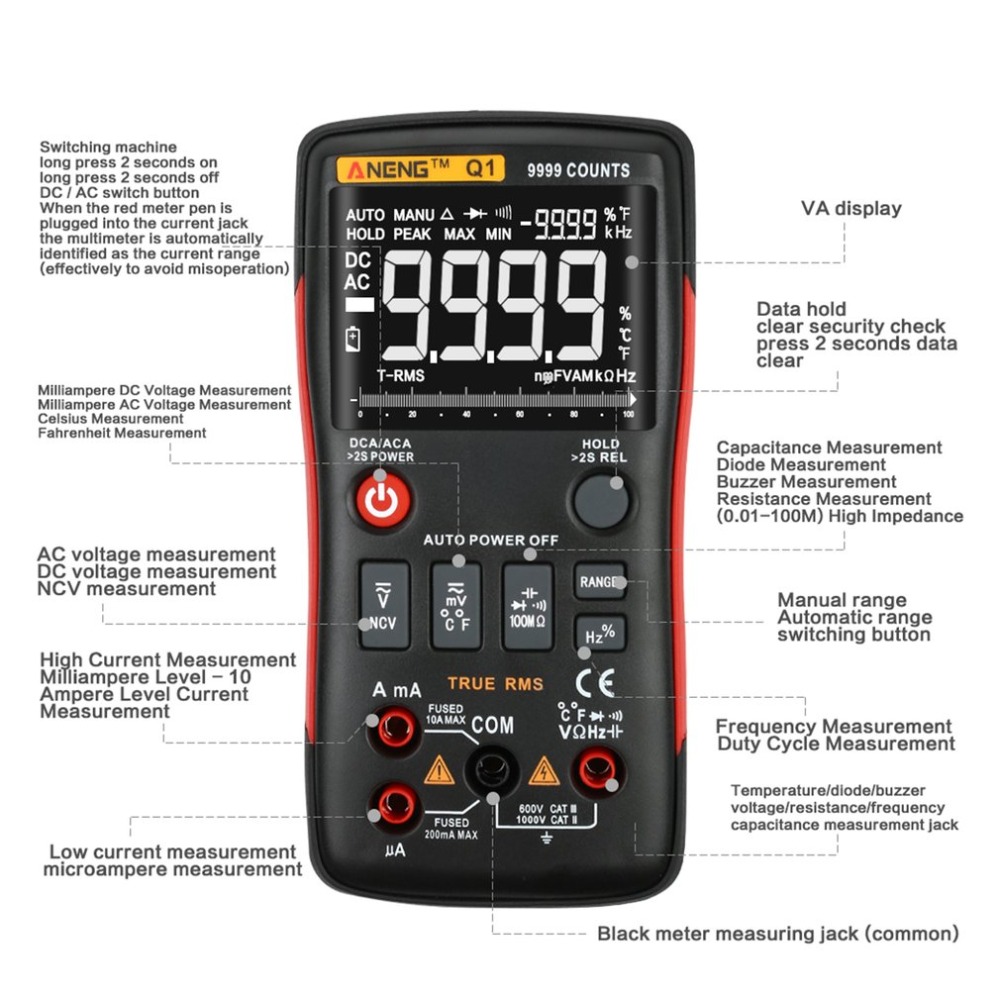 Диапазон тока: 999.9uA / 99.99uA / 999.9mA / 10A