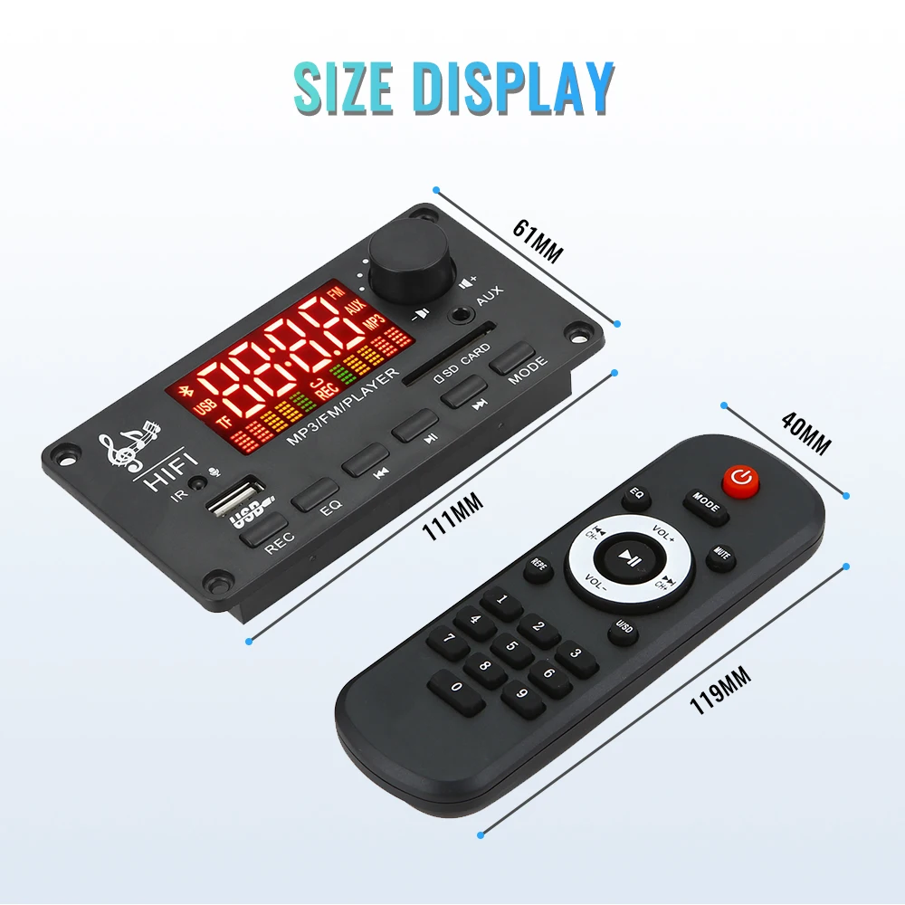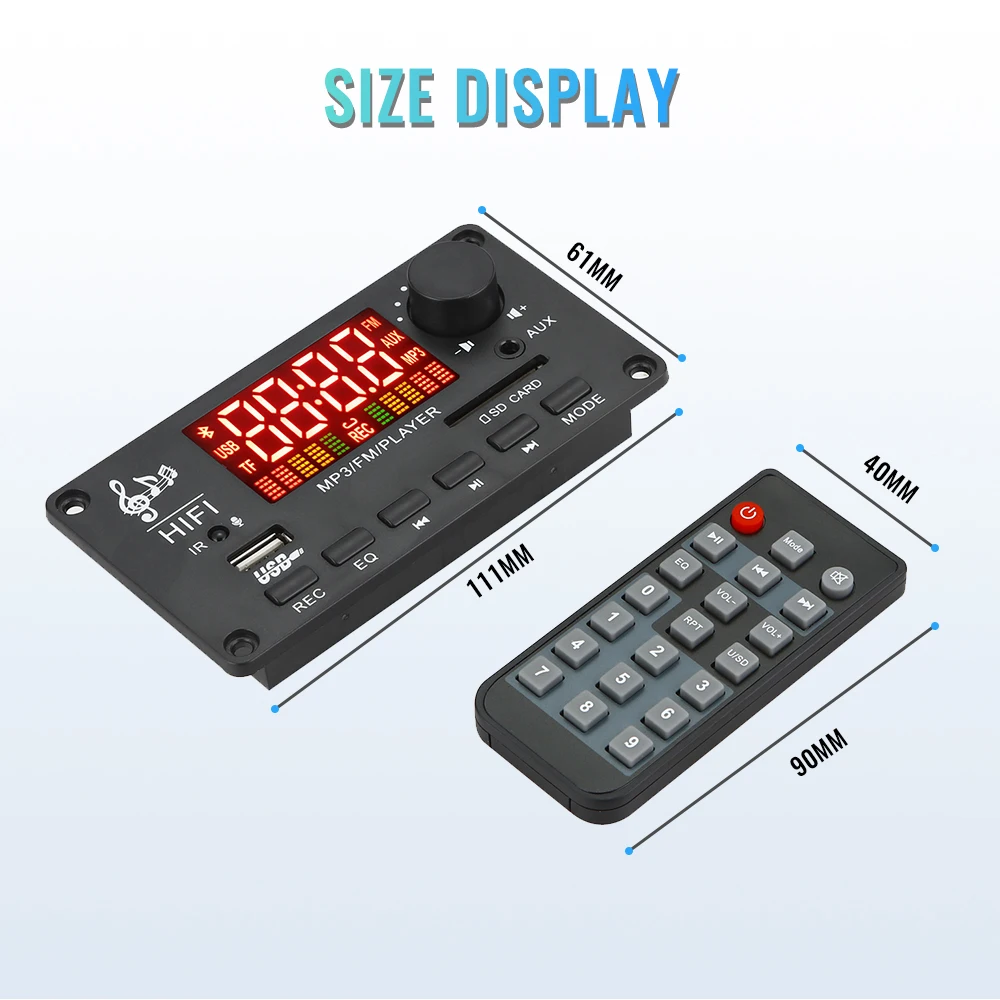 10. Поддержка выбора папки для воспроизведения. Когда USB или TF проигрывает, в устройстве есть папка и в ней есть песни. Нажмите кнопку previous или кнопку next дважды для выбора папки для воспроизведения композиций, и на экране будет отображаться F001-F00? И так далее, да? Папка отображает F00? .