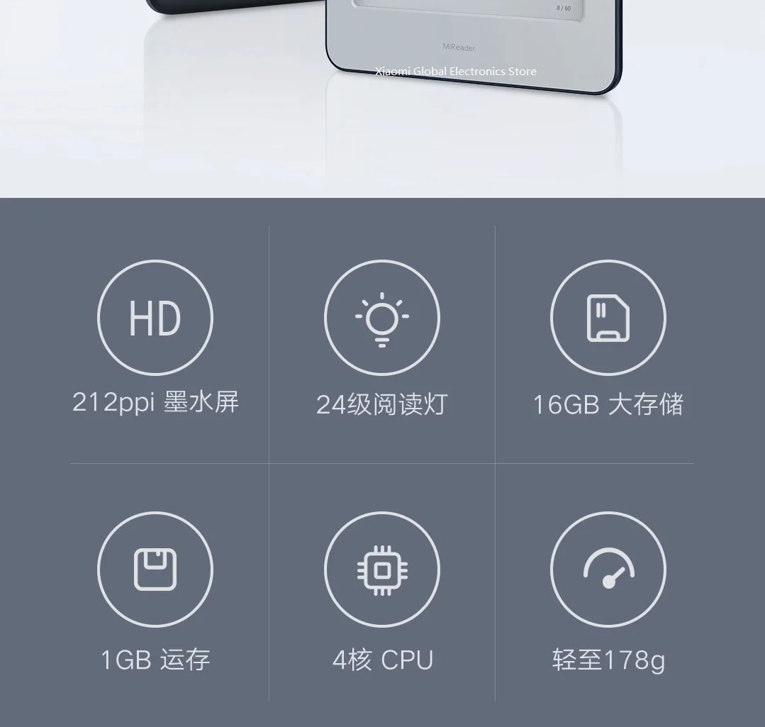 Xiaomi электронная книга читатель 16 Гб памяти HD сенсорный чернильный экран удобный планшет WiFi поддерживает больше форматов с читаемым светом для домашнего офиса(Версия на английском языке)