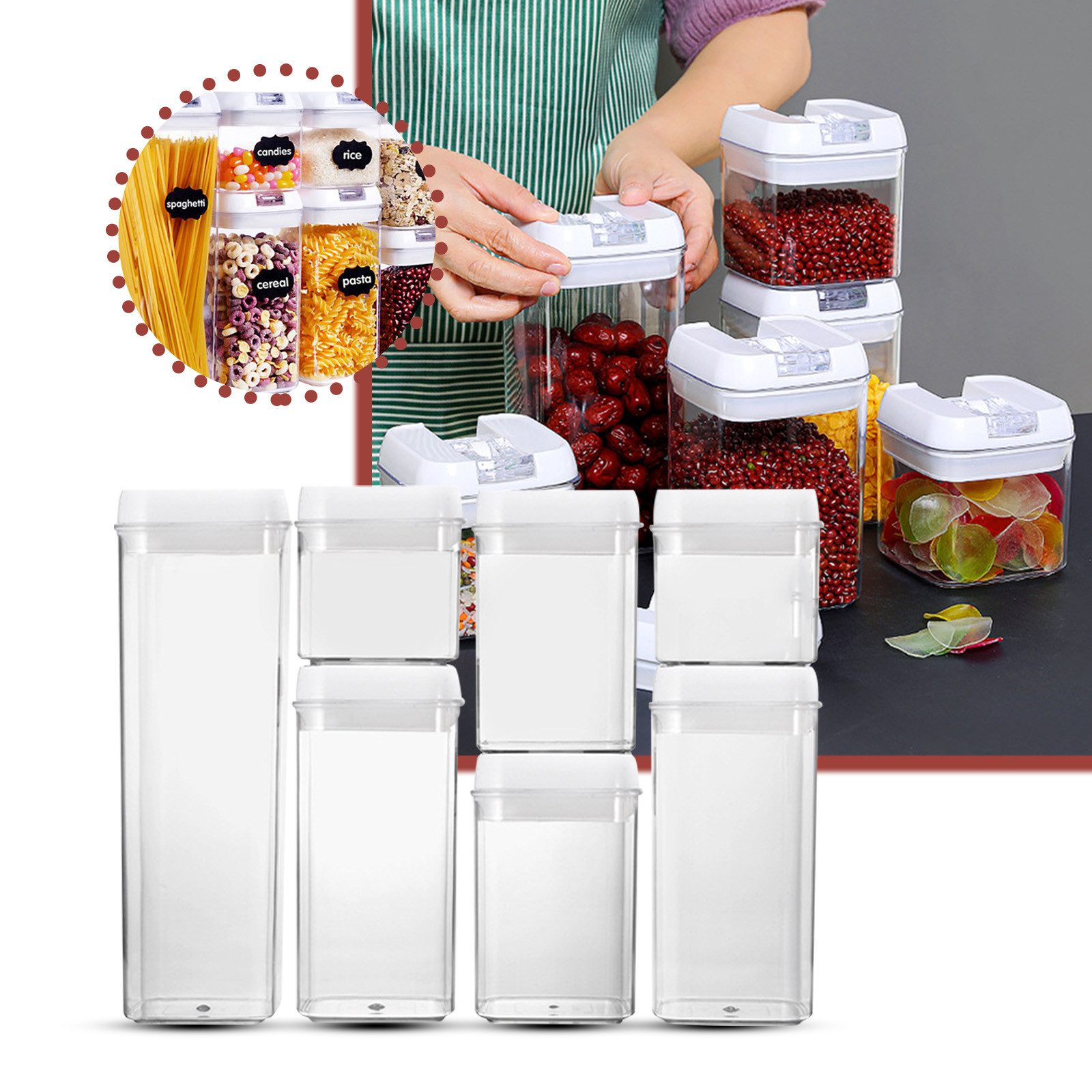Lids 7PCS Airtight Kitchen Canisters for Flour Cereal Sugar Pantry Organization