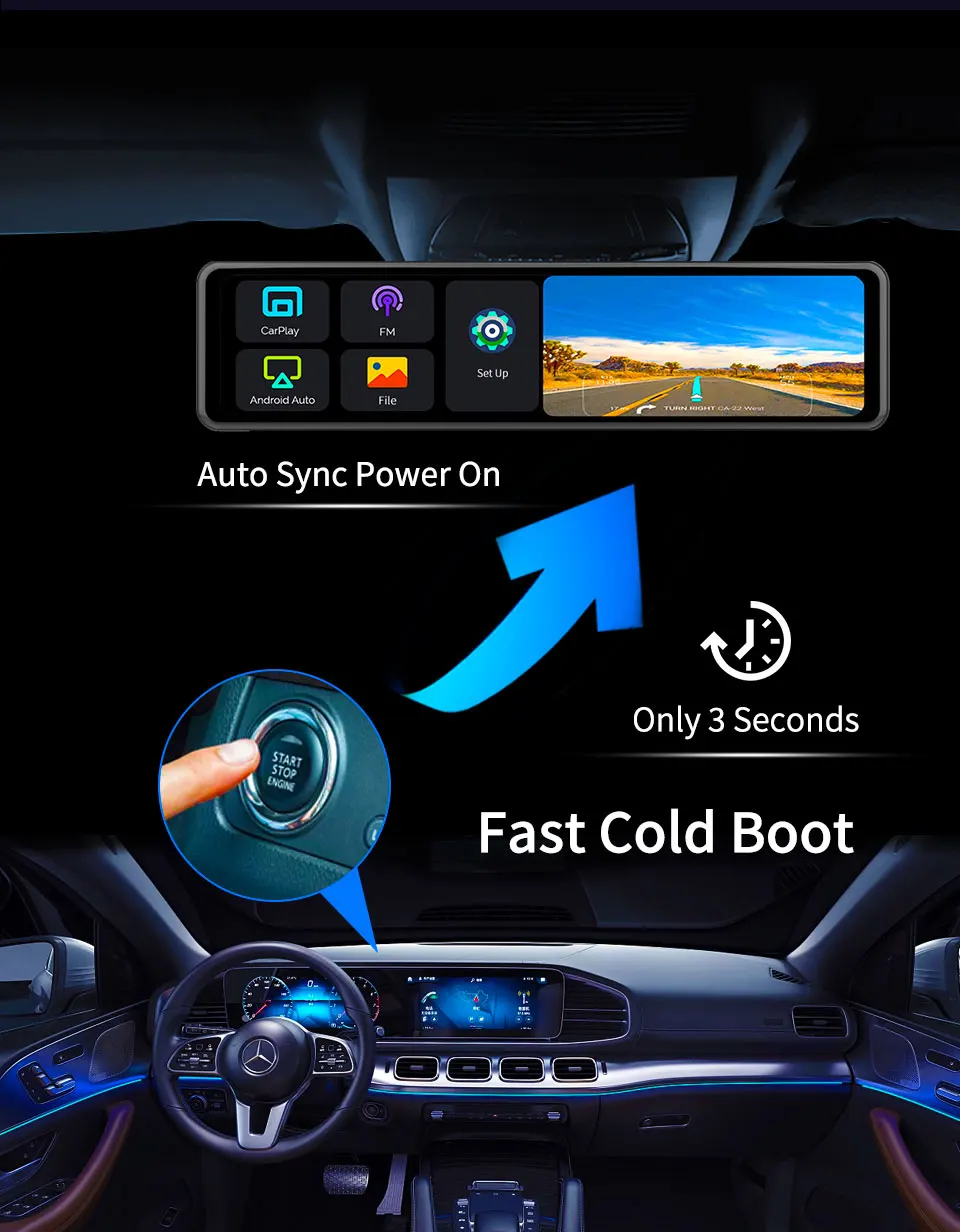 Автоматическая запись видео и блокировка видеофайлов С Датчиком G при обнаружении столкновения или аварии. Чувствительность g-датчика может быть установлена на разных уровнях. Функция циклической записи-обеспечивает непрерывную запись без потери секунды, запись автоматически во время зажигания транспортного средства, автоматическое выключение с зажиганием, чтобы вы были свободны от работы рук.
