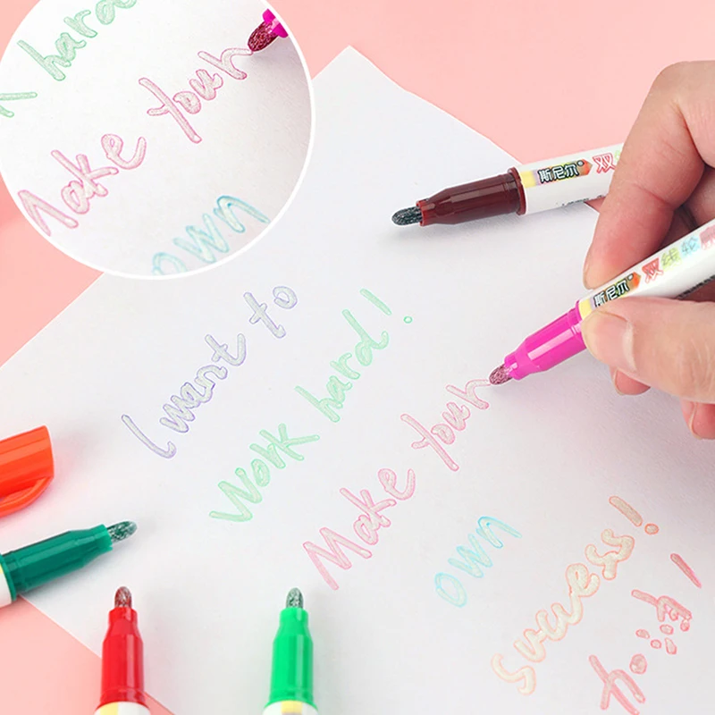 12 цветов, двойные линии, контурные художественные ручки, маркеры, Канцтовары, художественные ручки для рисования, сделай сам, контурная ручка, Студенческая маркерная ручка для рисования