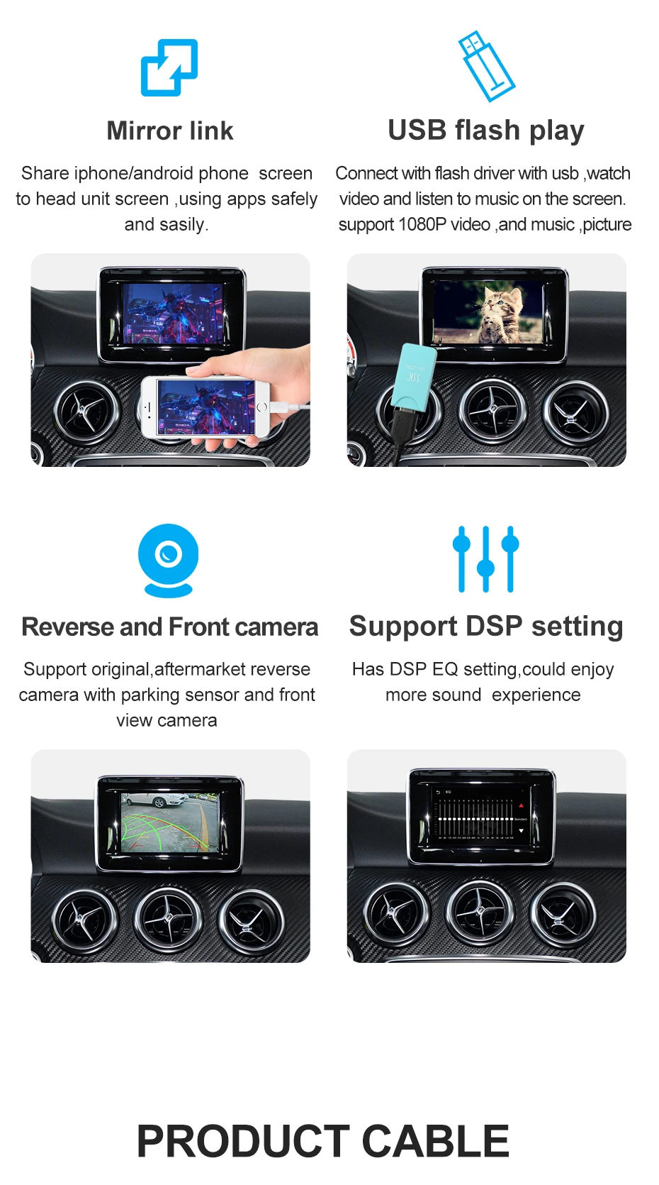 connect with flash driver with usb ,watch video and listen to music on the screen.support 1080P video ,and music ,picture.