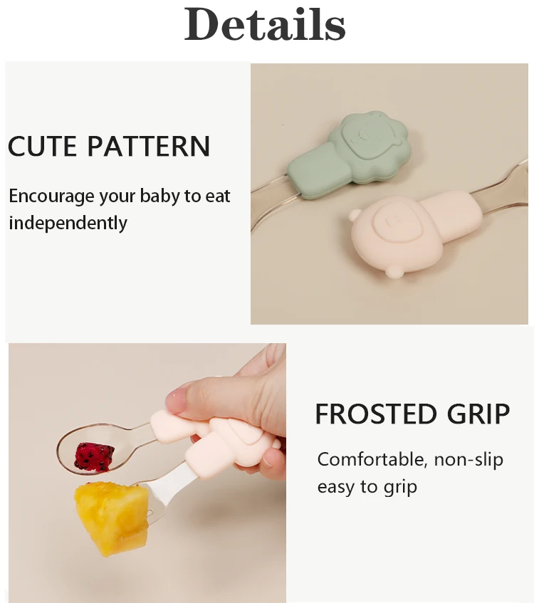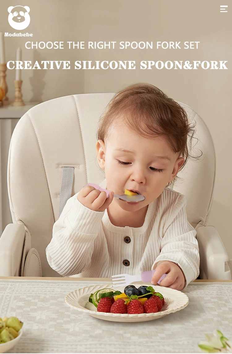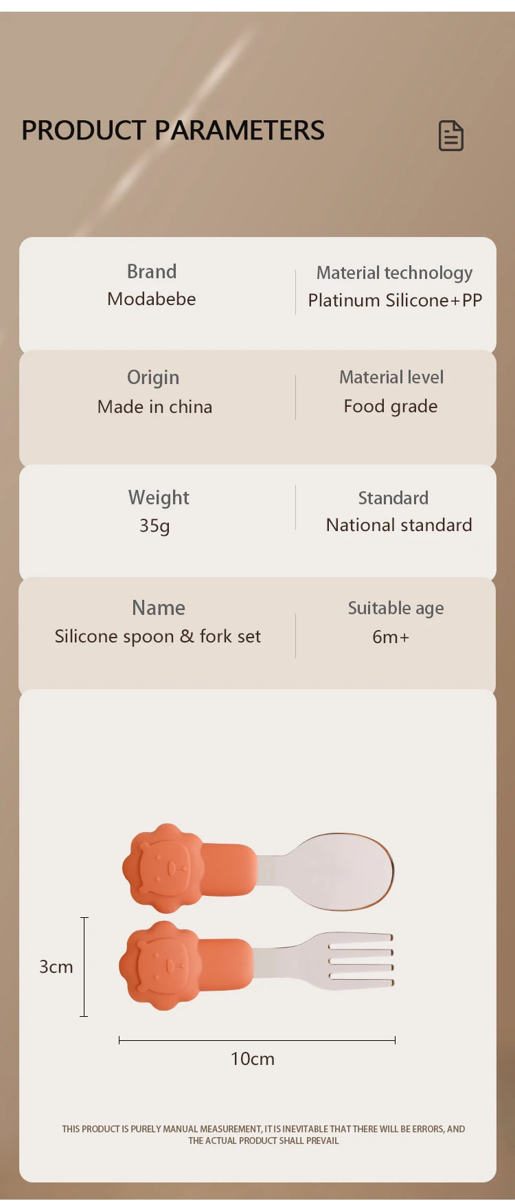 【 100% пищевой материал 】все материалы прошли национальный сертификат продукта для детей. Вилки и ложки изготовлены из полипропилена для детских бутылочек, который является безопасным, жестким, защищенным от падения. По сравнению с металлическим материалом, он более нежный на деснах малыша. Рукоятка посуды из ладони изготовлена из пищевого силикона, не содержит BPA, свинца, латекса и ФТАЛАТА.