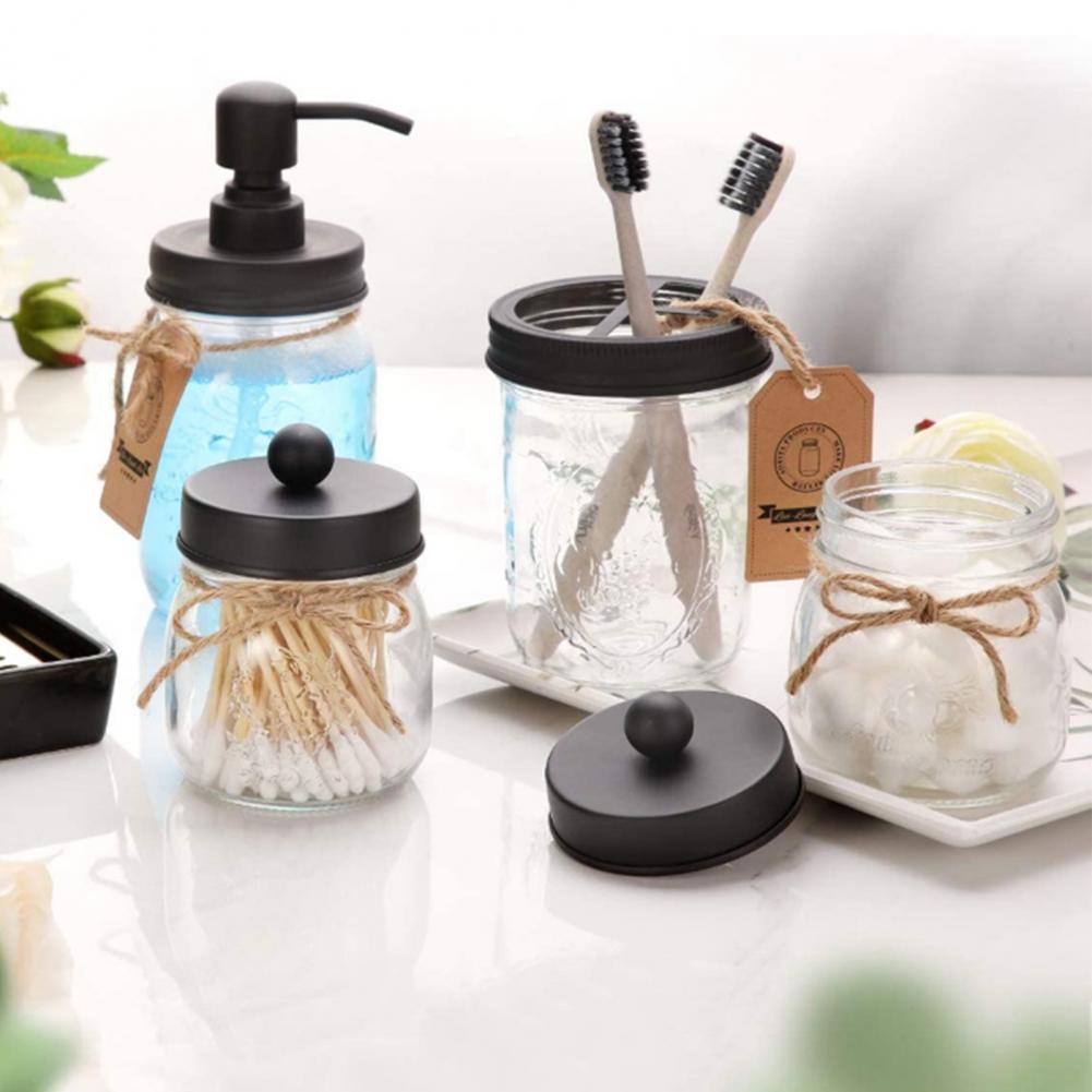 Дизайн с крышками из нержавеющей стали 304, эти банки для ванной комнаты не ржавеют и безопасны для повторного использования в течение длительного времени.