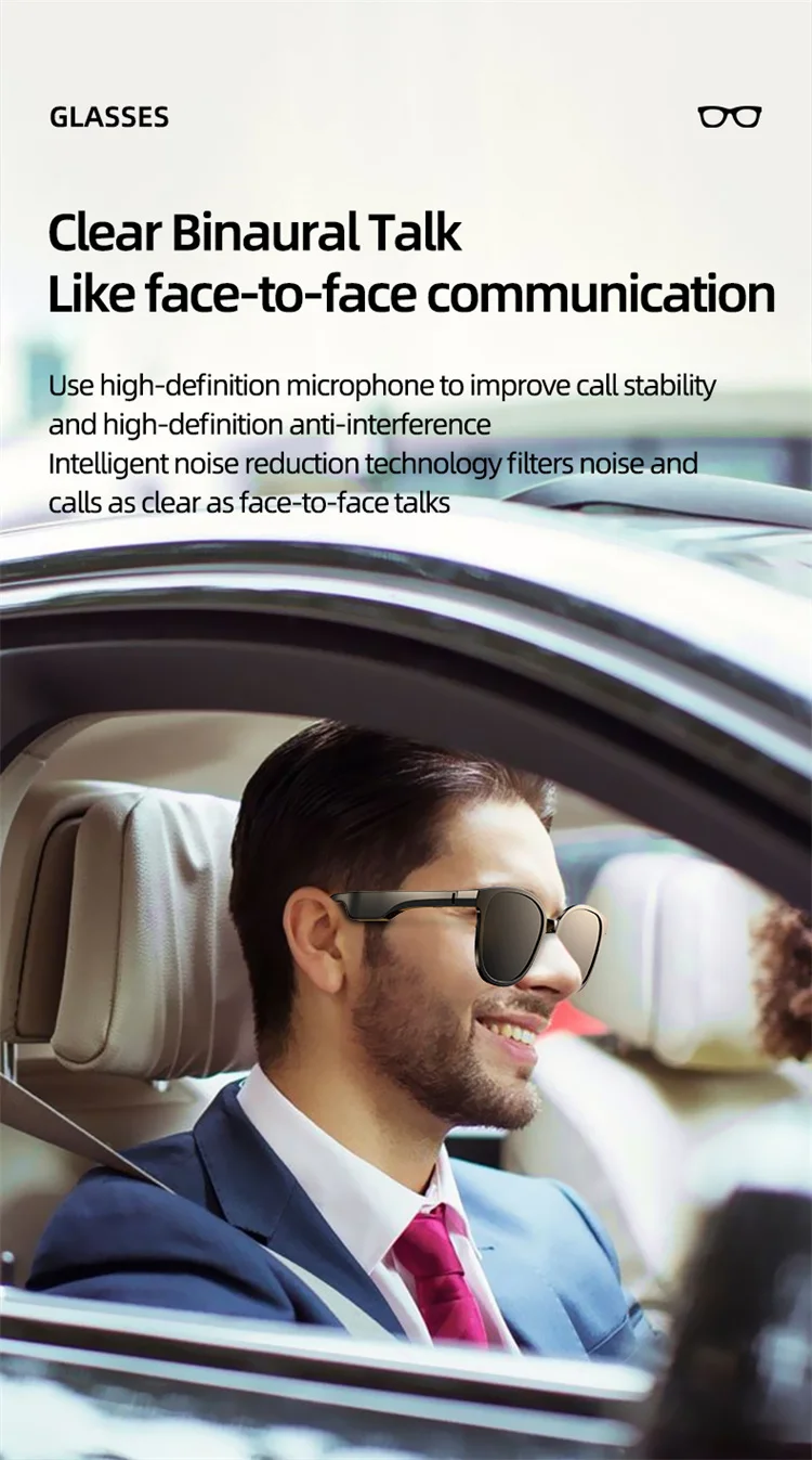 3. С микрофоном с шумоподавлением: Этот беспроводной bluetooth 5,0 имеет широкую совместимость. Умные солнцезащитные очки имеют встроенные микрофоны с шумоподавлением, которые позволяют совершать и принимать звонки. Таким образом, эти очки идеально подходят для езды на велосипеде, бега, вождения, бокса, рыбалки, игры в баскетбол, шопинга и других видов активного отдыха, вы можете легко совершать звонки высокого качества.