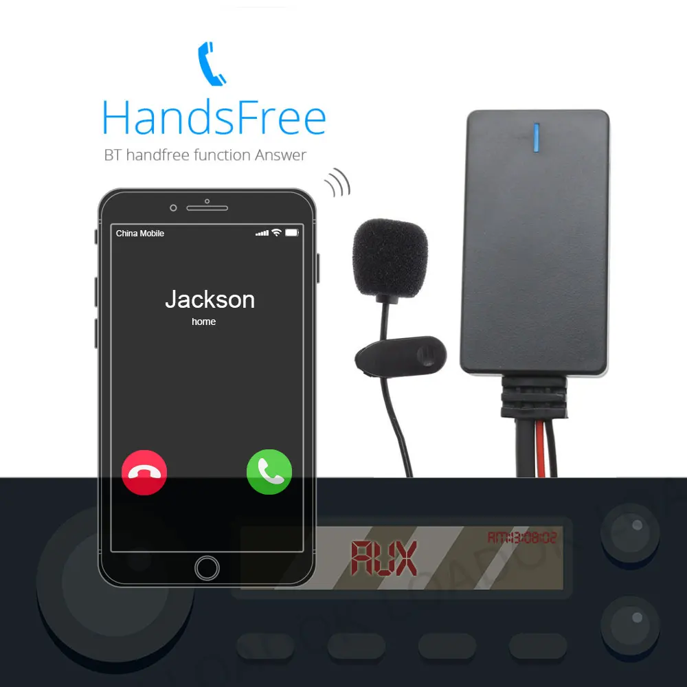4. Сопоставьте свой телефон или коврик с bt модулем и выберите Aux с вашего радио, затем вы можете использовать свой телефон для воспроизведения музыки через Автомобильные колонки.
