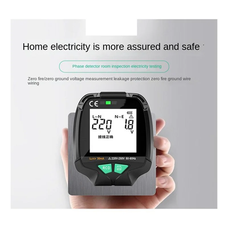 Напряжение обнаружения: Тестер розеток питания может обнаруживать напряжение живого провода и заземляющего провода нейтрального провода, а также обнаруживать, находится ли функция защиты от утечки источника питания в хорошем состоянии.