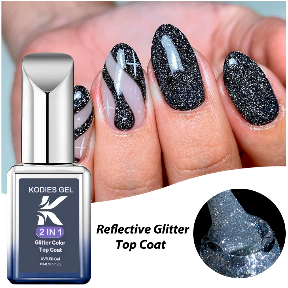 Гель-лак KODIES, светоотражающий Гель-лак, верхнее покрытие 2 в 1, УФ-блеск, блестящий отражающий Гель-лак, Полупостоянный Маникюр для дизайна ногтей