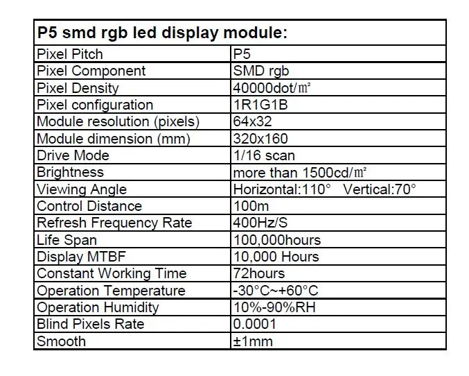 P5 Крытый полноцветный rgb SMD СВЕТОДИОДНЫЙ дисплей спецификация блока: