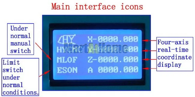 Панель дисплея может в режиме реального времени отслеживать бегущий путь g-кода на компьютере или ввода с помощью панели управления, а затем полностью и одновременно отображать изменение каждого оси '(X, Y, Z axis и т. Д.) значения на экране.