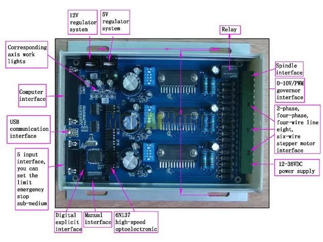 Кроме того, усовершенствованные внешние ручные инструменты управления (панель дисплея и панель управления) на профессиональной версии могут быть использованы не только для ручного управления шаговым двигателем, но иПрограммирование g-кода вручную. Все запрограммированные вручную g-код также будет записан на Встроенный интеллектуальный чип памяти, и тогда мы также можем легко запускать записанный g-код для управления шаговым двигателем. Учитывая, что функции записи g-кода компьютера достаточно для всех трех осей, работающих без компьютера, чтобы избежать повторения функции, функция ручного программирования в основном предназначена для одной оси для линейного движения, поэтому три оси не могут быть запрограммированы вручную одновременно. Эта функция широко используется на работе, которая просто нужна одна ось, такие как RBI машина, конвейер и т. Д.