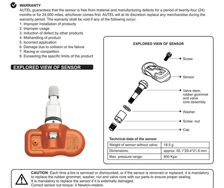 Топ 6 причин, чтобы получить MX-Сенсор TPMS диагностики и Услуги инструмент: 1. Встроенный выполнять как Э датчика, с точки зрения сигнала, долговечность и функциональность 2. automotive батареи класса для удовлетворения суровых погодных условиях 3. Высокоточный воздушный клапан для предотвращения утечки воздуха 4. Сменный алюминий клапана Анодированный для защиты от коррозии 5. Надежный Зажим-в поворотными стволовых дизайн позволяет для 0-35 градусов регулировка угла подходят для всех типов колеса 6. Быстрый и простой монтаж на любые диски