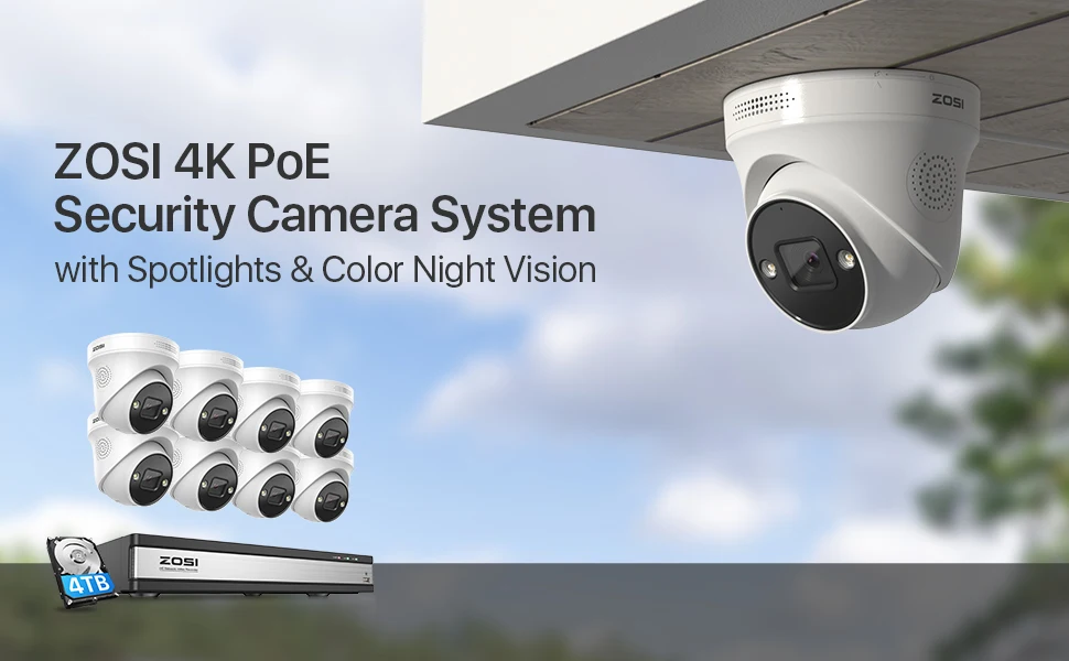 ZOSI 4K 16CH наружный прожектор по камеры безопасности,H. 265+ 16Channel 8MP NVR с 4TB HDD,4K PoE IP камеры, двухсторонний аудио, обнаружения человека, звуковой и световой сигнализации, удаленный доступ, для 24/7 записи