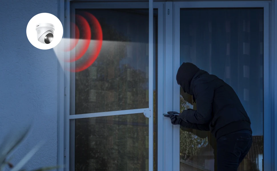Камеры с прожектором ярко светят при подозрительных событиях, а сирена тревоги не оставляет злоумышленникам ни единого шанса проникнуть в вашу собственность.